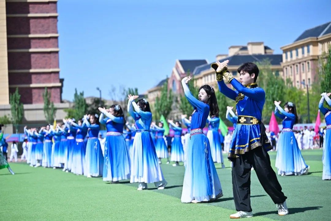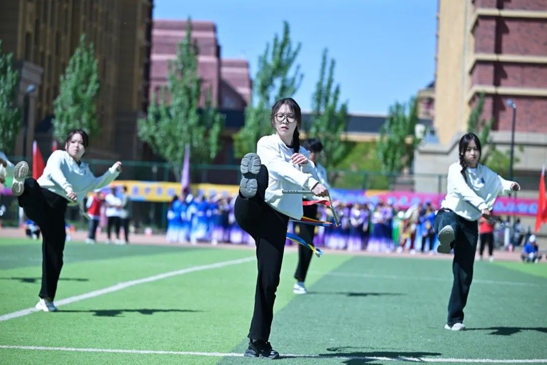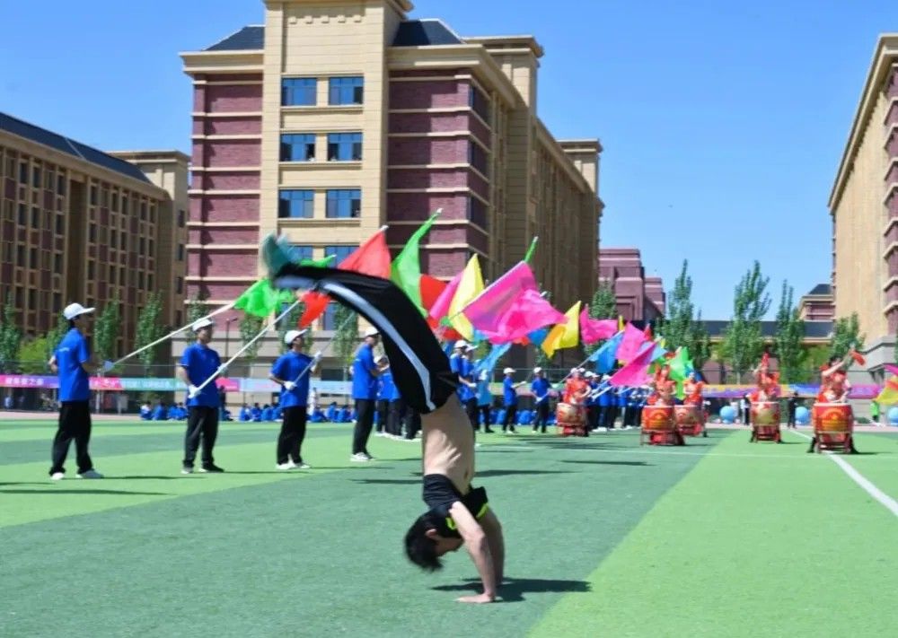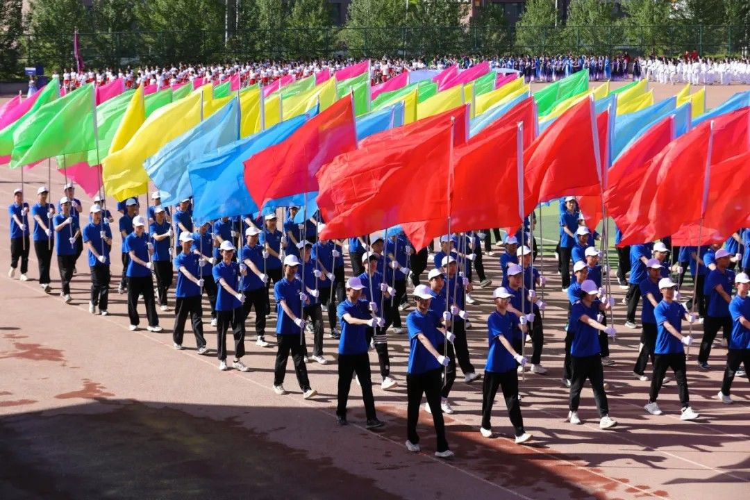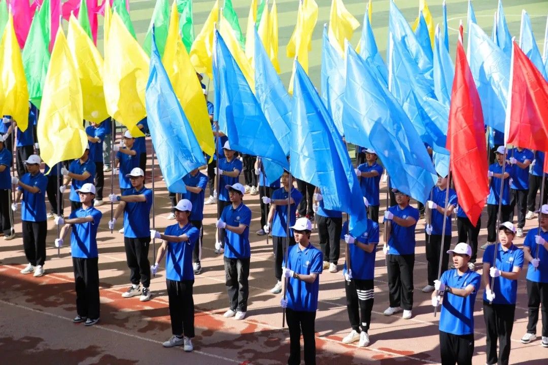 手持彩旗,步伐矫健,如黄河奔涌般充满力量,如彩虹绚烂般闪耀赛场。红色般赤诚热情、蓝色般沉稳踏实;粉色般自信张扬、绿色般积极向上。每一次挥动,都是对胜利的渴望;每一次奔跑,都是对未来的憧憬。