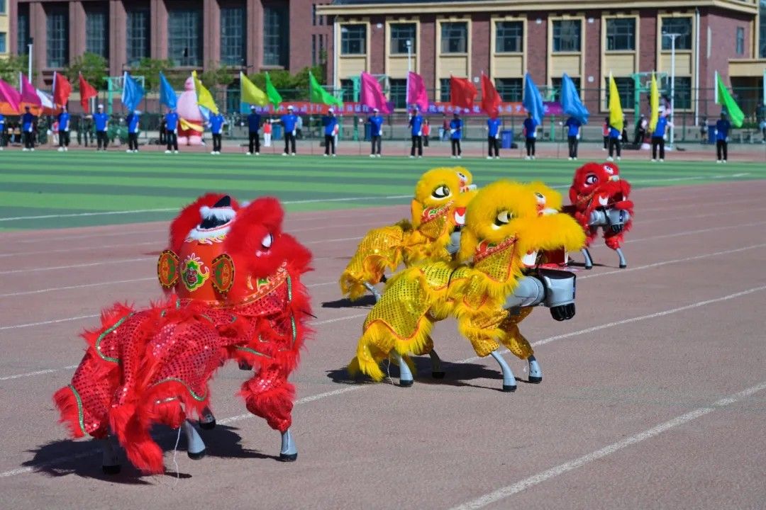 01 智能装备学院,“机”聚英才,“电”燃梦想。擂鼓阵阵雄狮舞,机电学子展雄风,传承智慧、展现特色。舞狮、机械狗、机器人纷纷上场,当兵马俑遇上机器人,他们以共舞传递科技之美,聆听科技与文明的对话。