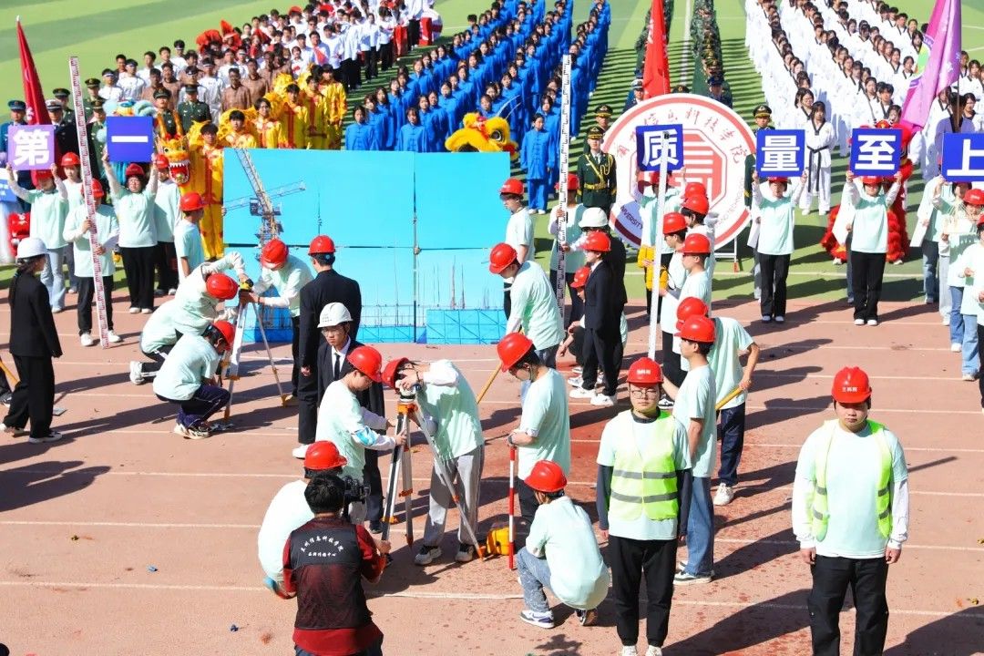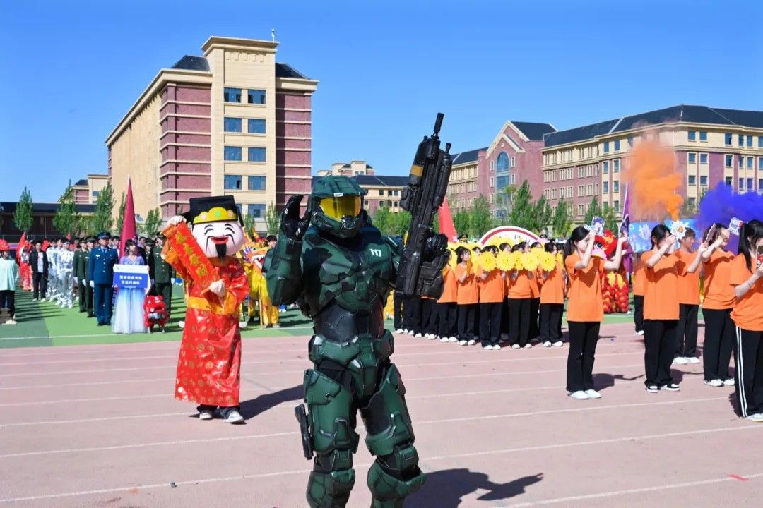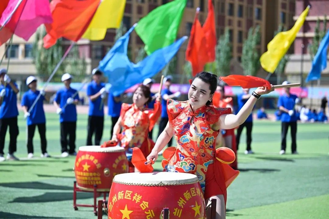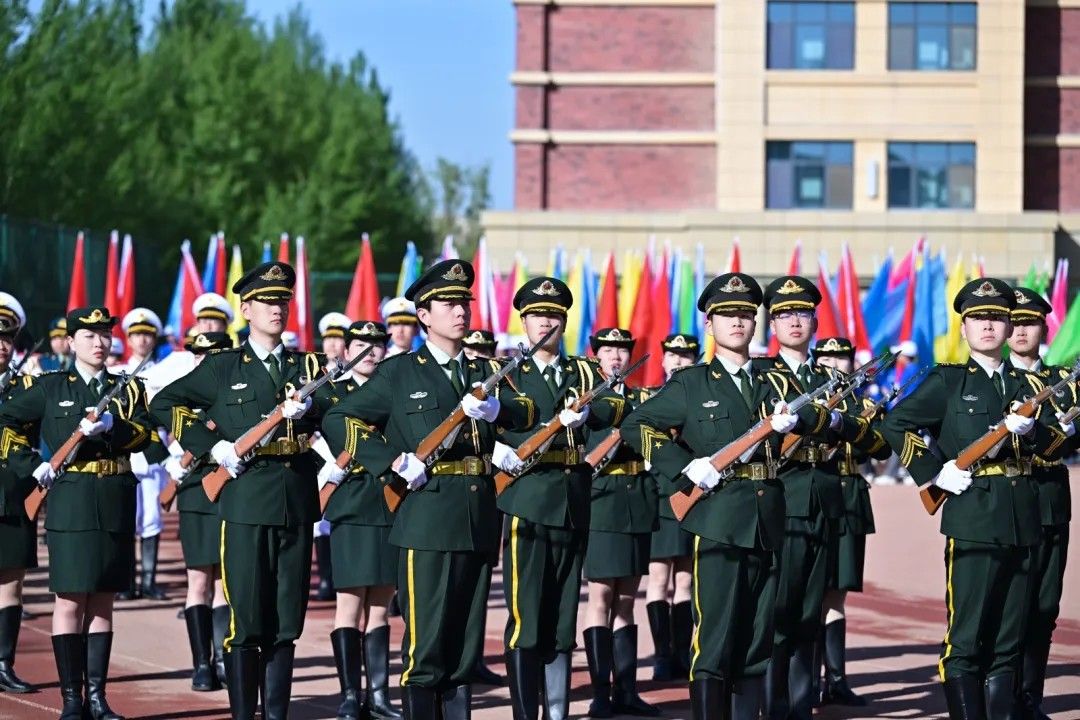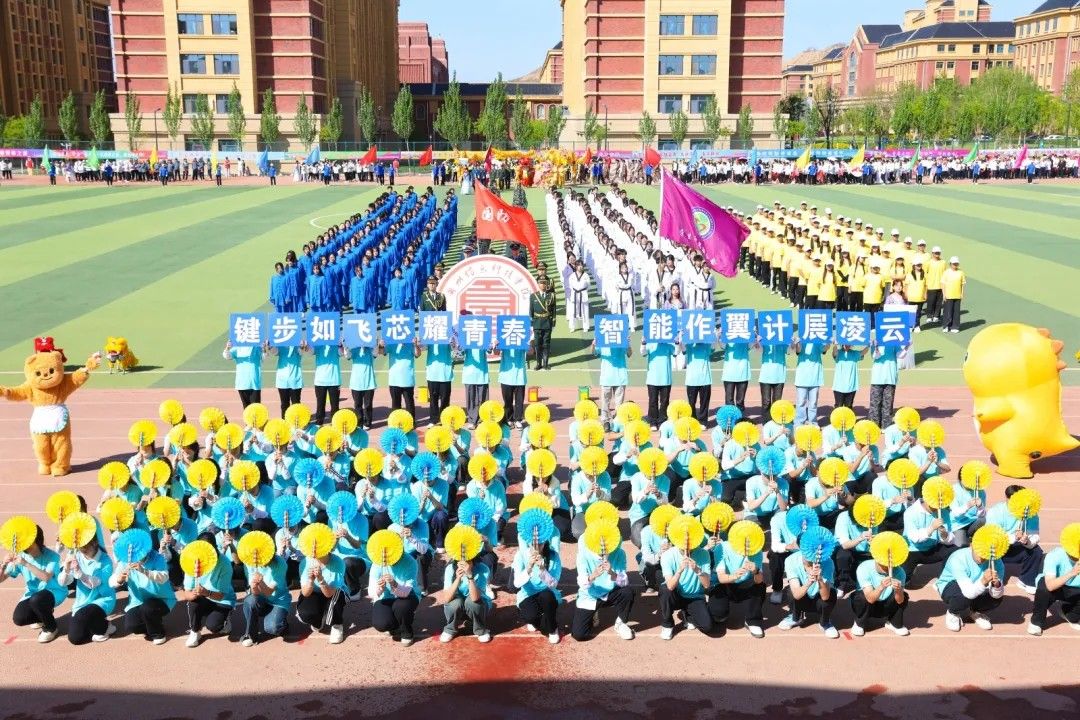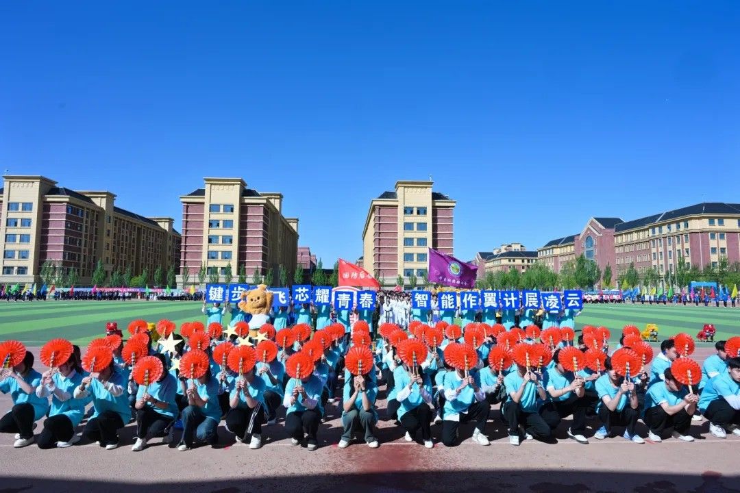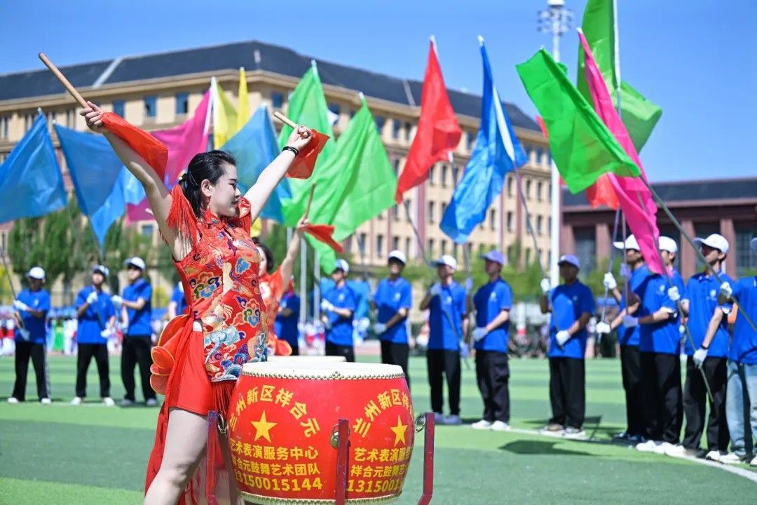 彩旗猎猎,象征着智慧与激情;步伐铿锵,彰显着信念与力量;炎炎日头之下,旗帜正以苍穹为幕,挥洒出一曲力与美的交响。每一次翻卷如浪,都是色彩的奔腾。航模飞机化作剪影在天空翻腾,激情磅礴的战鼓为青春赛场增添力量。