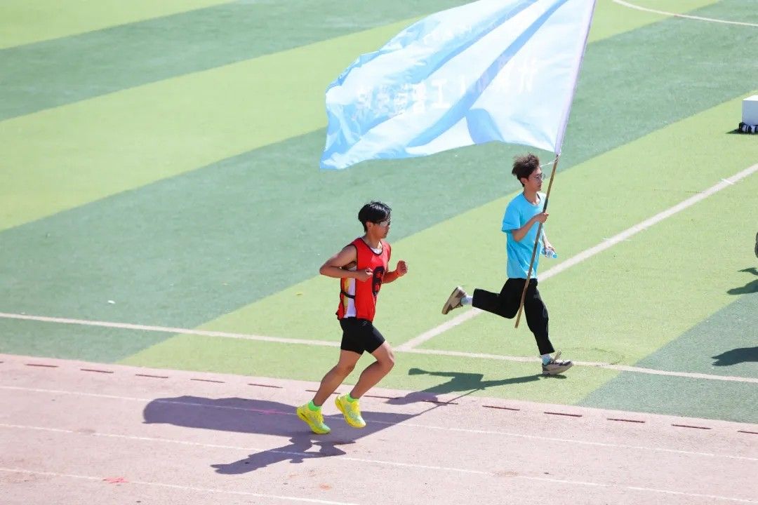 跑道之外,他们奋力挥舞着院旗,当汗水浸透衣衫,当疲惫席卷身心,陪跑的同学化作最坚实的后盾。用一句句 “加油” 驱散你的倦怠,用并肩前行的坚持给予选手力量。他们不追逐掌声与荣耀,却在赛道边默默书写着比奖牌更珍贵的情谊,温暖的陪伴,让每一段赛程都不再孤单。