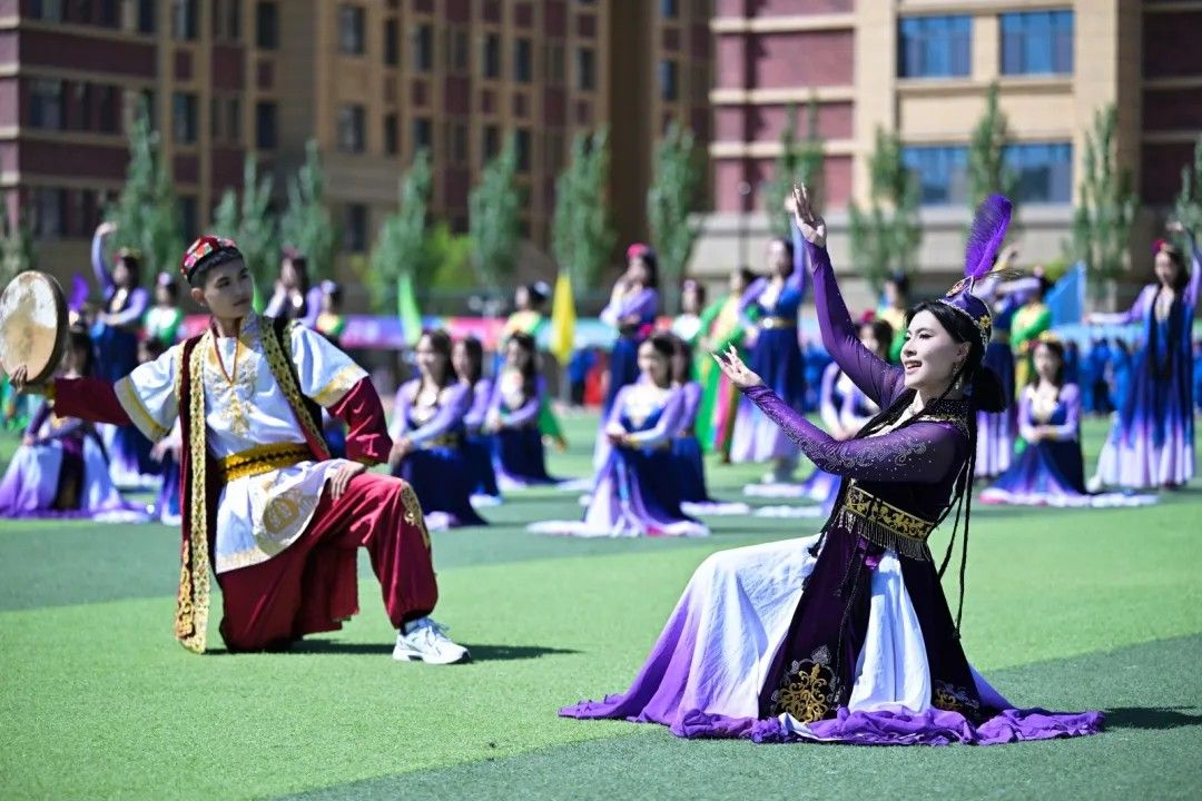 五十六朵花开成一个夏日,五十六个民族汇成一家亲。青春的脚步敲响民族团结的鼓点,绚烂的霓裳扬起华夏大地的风采,灵动的舞姿勾勒各民族携手同行的画卷。每一个舞步都是文化的对话,每一次回眸都是团结的共鸣。