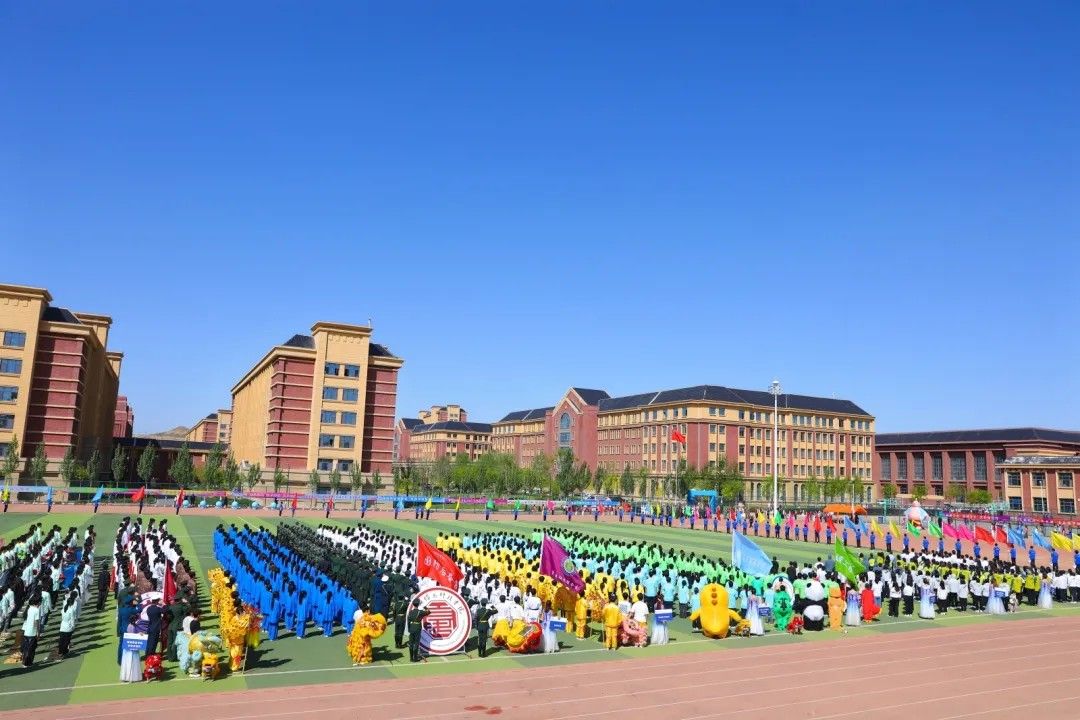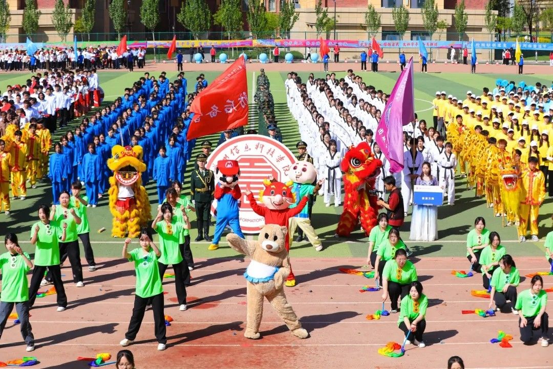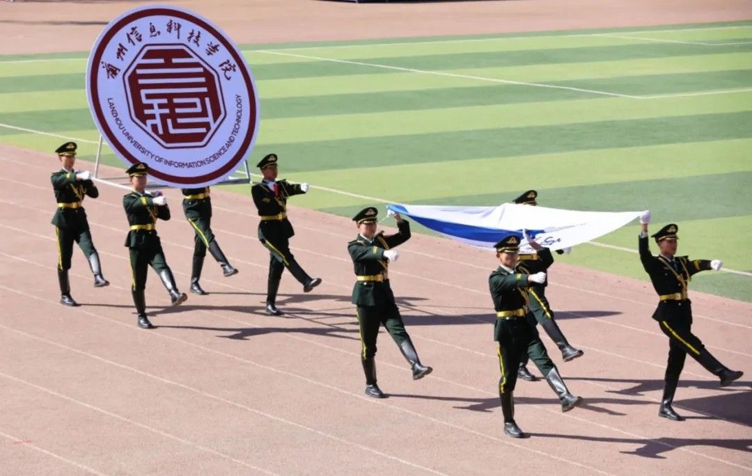 校旗校徽彩旗方阵,蓝色校旗以年轻的梦想、无限的活力。象征着beat365在线唯一官网的蓬勃向上,代表着兰科健儿们热情、奋进的精神。
