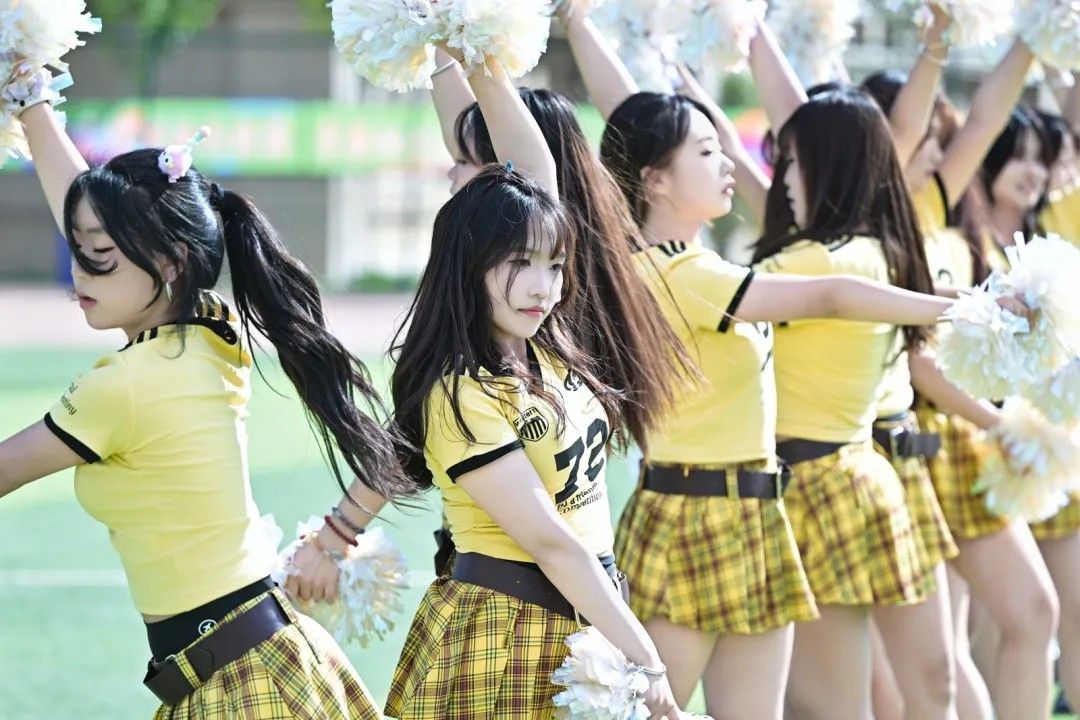 他们是赛场上跃动的火焰,是青春最炽热的呐喊。翻飞的花球划出绚丽弧线,整齐的舞步踏响激情节拍,灿烂的笑容比阳光更耀眼,用舞姿驱散疲惫阴霾。每一次跳跃、每一声助威都是青春最热烈的应援。