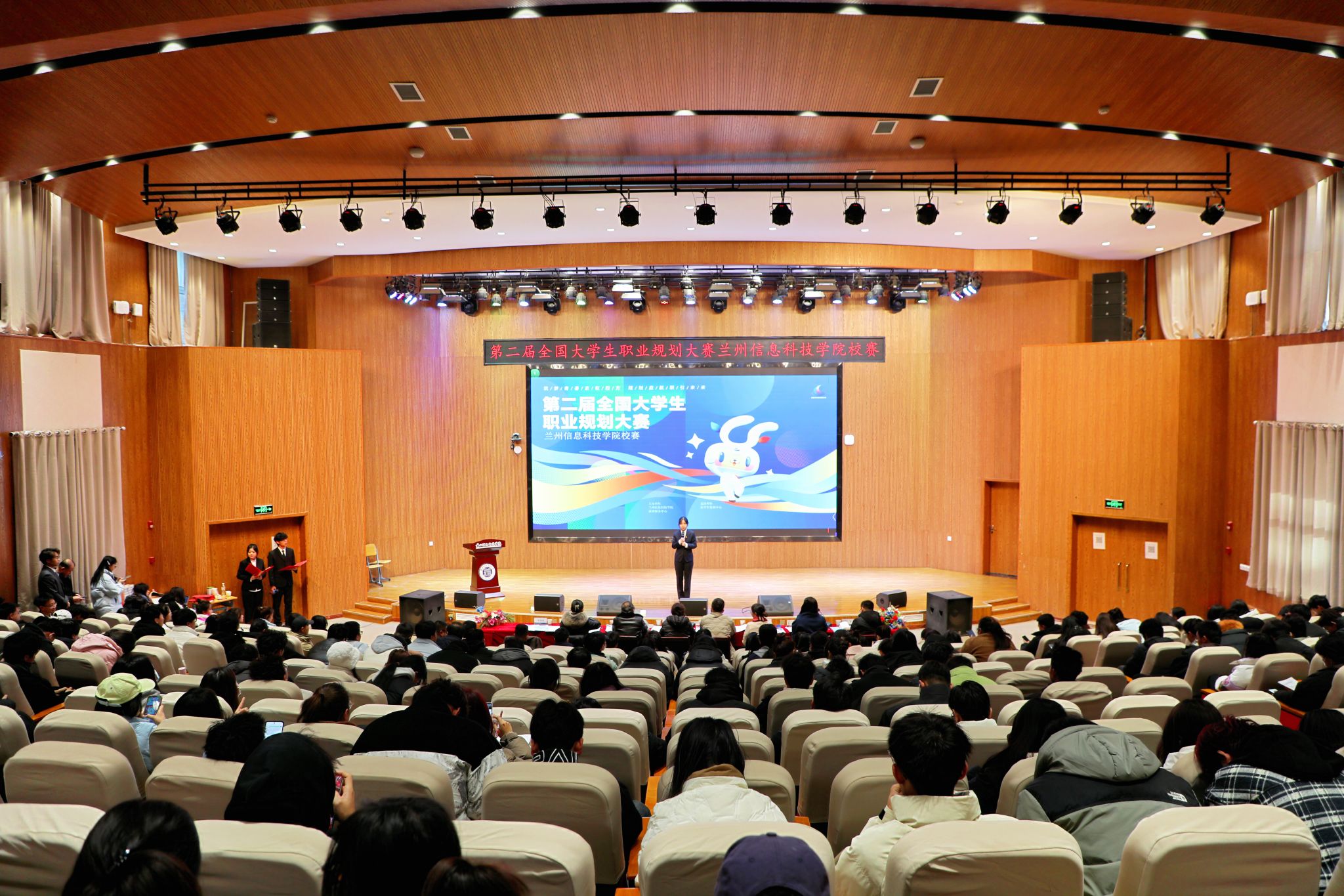 校长助理苏存兴在致词中指出,学校始终坚守为党育人、为国育才的初心使命,紧紧围绕“高质量就业是立校之本”战略目标,举办职业规划大赛,是推动就业指导与生涯规划课程实践化、应用化的重要载体,是提高学生就业竞争力的关键举措,也是展示学校就业育人成果及学生求职能力的一次盛会。他要求同学们清晰职业定位,明确未来发展方向,在职业规划与创新实践中实现个人价值与社会价值的统一,赛出水平、赛出风格、赛出精神。随后,他宣布第二届全国大学生职业规划大赛校赛正式开始。