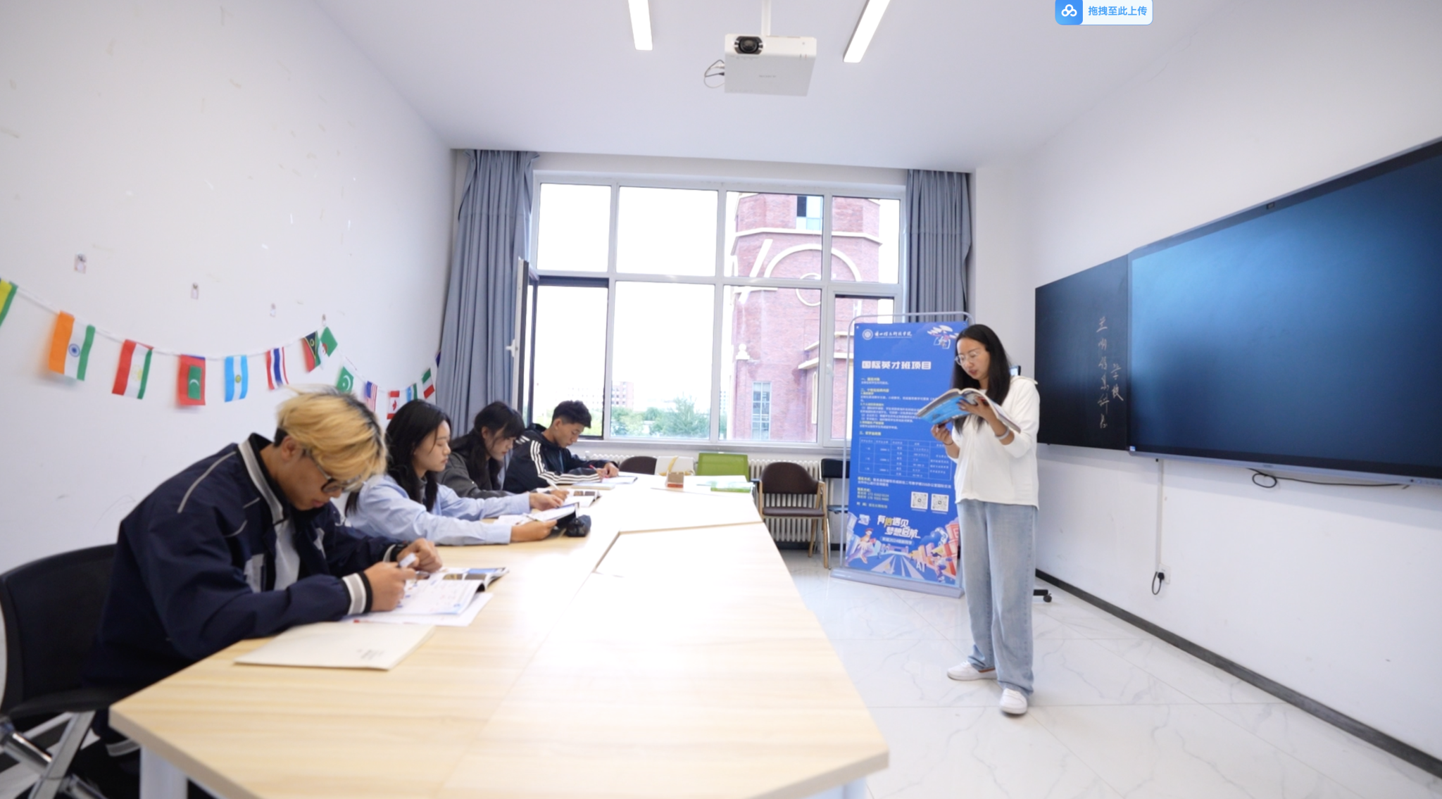 她说,英语学好才能走出去。作为英语专业的学生,杨佳怡一直有个愿望,那就是能走出去,用英语探索更广阔的世界。“想要出去看看,首先是要练习好口语”,因此,她特别珍惜课前5分钟的演讲机会。“老师会采用多样化的教学方法,让我们参与每节课的课前5分钟,这不仅鼓励了我们大胆开口说话,还提升了我们的英语口语水平。”杨佳怡说道。除了课前5分钟的训练,国际英才班的英语课,也让她受益匪浅。国际英才班采用小班授课模式,运用互动式教学,学生与老师能够近距离交流。同时教学内容丰富,老师会结合当下热点,激发学生兴趣,营造浓厚学习氛围。“在这样的课堂上,我的语言技能全面提升,学习兴趣被激发,英语水平得到了很大的提高。”杨佳怡说道。