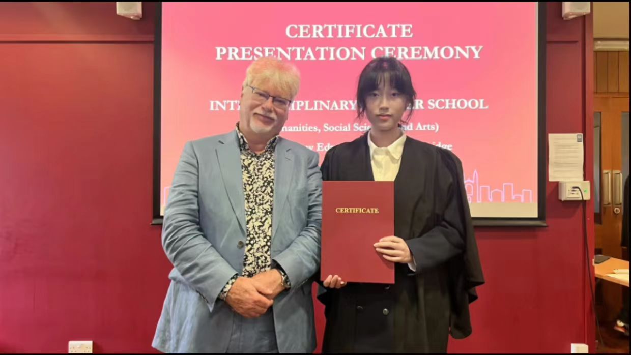 共筑教育梦想,开启未来篇章。此次的剑桥研学旅行,不仅让杨佳怡沉浸于英伦文化的深邃与辉煌之中,每一站的探索与实践,更像是心灵与智慧的双重探险,悄无声息。她内心深处的潜能被逐一唤醒,创新的种子在思维的土壤中破土而出,绽放出耀眼的光芒。“这是一段奇妙又充满着魅力的旅程,希望学弟学妹们能抓住机遇,有机会一定要走出去看看,世界很大,一定会有意想不到的收获。”