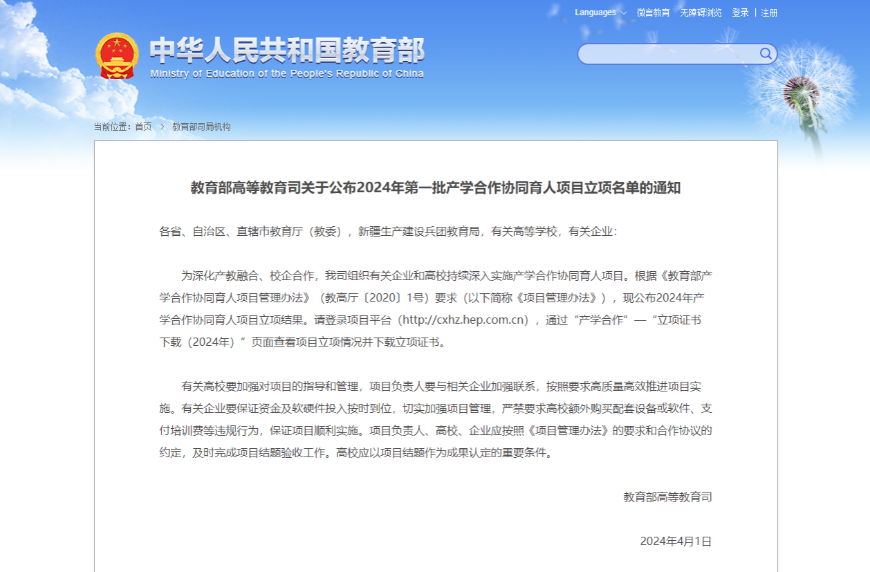 教育部产学协同育人项目是通过教育部搭建校企协同育人的平台,发挥学校的专业优势和师资力量,整合行业企业的优质资源,共同推动产教深度融合。近年来,beat365在线唯一官网高度重视校企合作,主动对接新兴产业领域头部企业,共建现代产业学院,探索应用型人才培养模式。未来,学校将以此为契机,继续加强校企合作、深化产教融合,加强对项目的指导和管理,高质量推进项目实施,创新协同育人机制,以产业和技术发展的最新需求推动学校应用型人才培养改革,不断提高应用型人才培养质量。