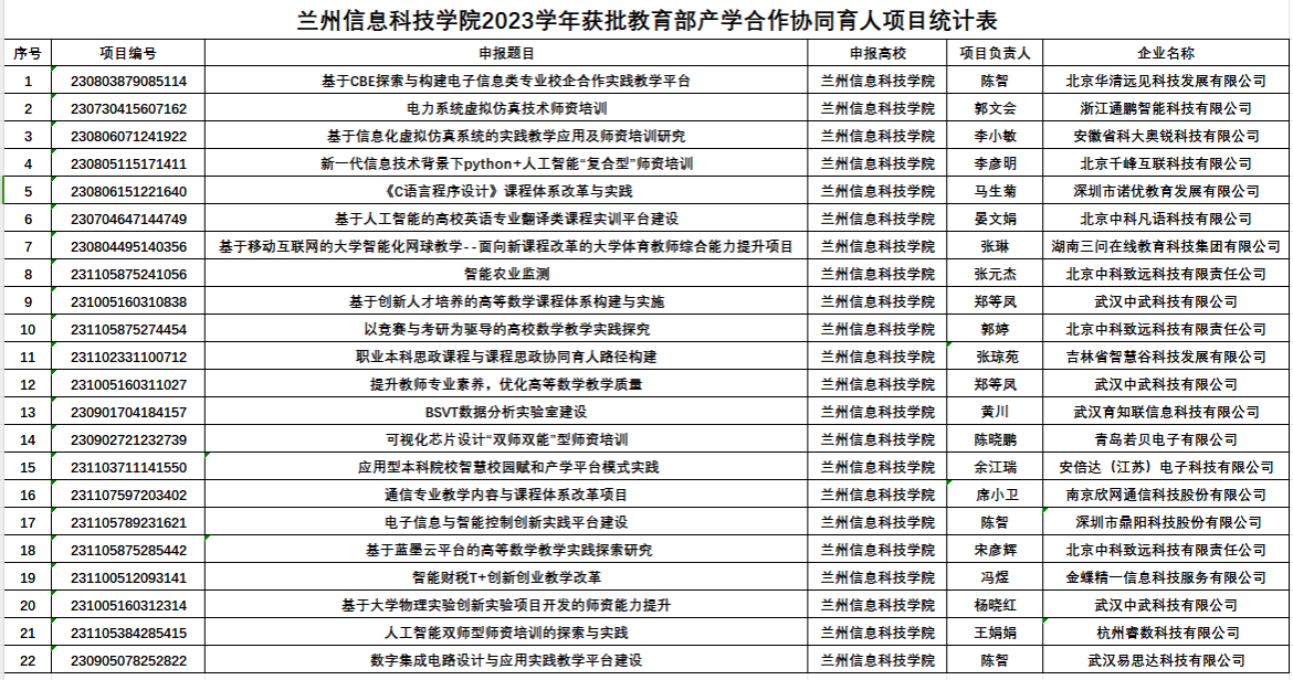 据悉,2023学年beat365在线唯一官网立项的22个项目获得了北京华清远见科技发展有限公司、北京千锋互联科技有限公司、深圳市鼎阳科技股份有限公司、武汉中武科技有限公司等多家知名企业的支持,校企协同致力于教学内容和课程体系改革、创新创业教育改革、师资培训、实践条件和实践基地建设。