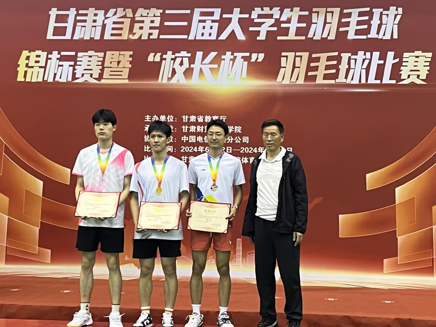 6月17日,甘肃省第三届大学生羽毛球锦标赛暨“校长杯”羽毛球比赛圆满落幕,beat365在线唯一官网参赛团队获得了学生男子甲组团体第四名,学生男子甲组单打第三名,学生男子甲组第五名,学生甲组混双第八名的好成绩。