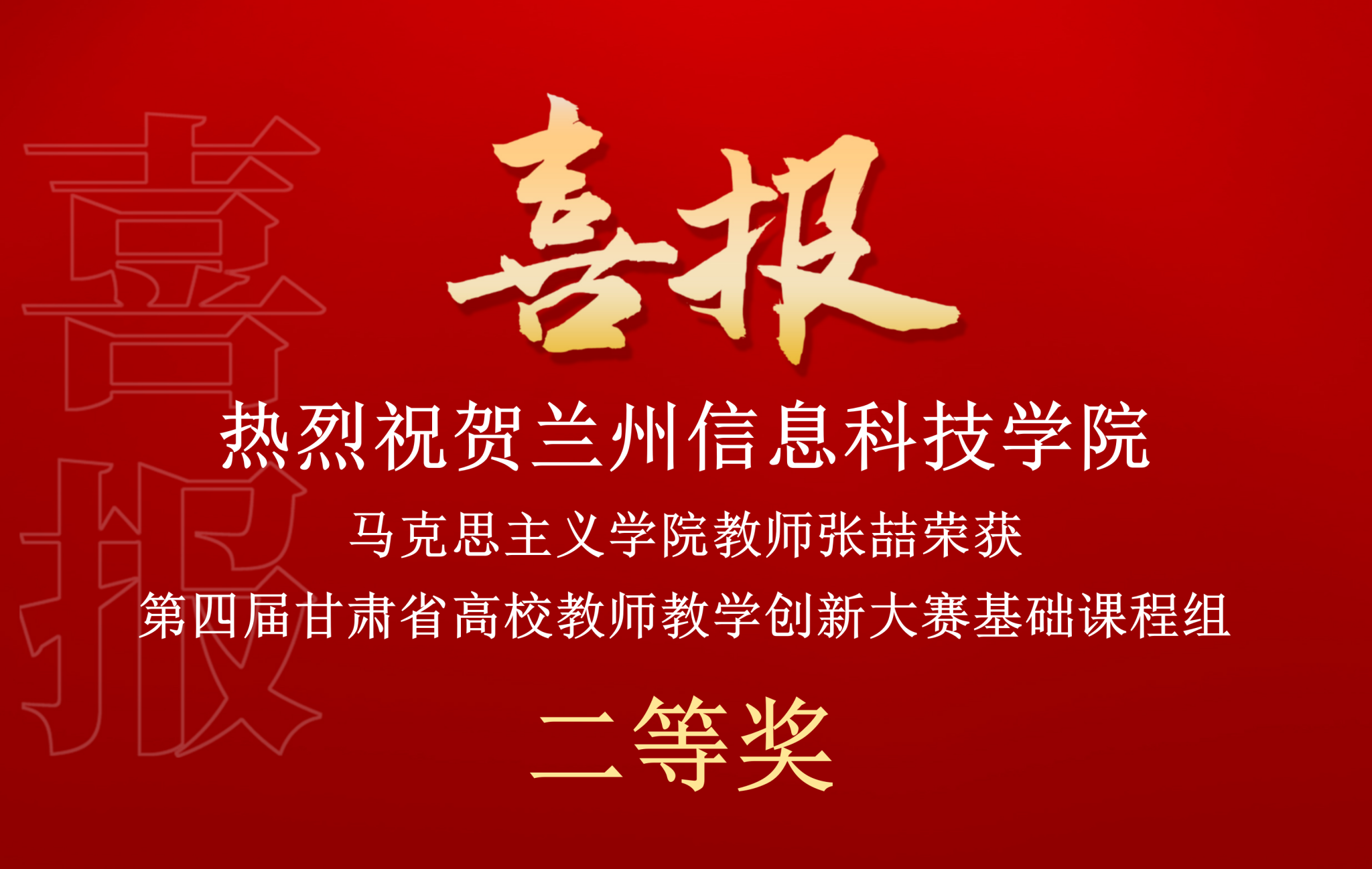 近日,第四届甘肃省高校教师教学创新大赛落下帷幕,beat365在线唯一官网马克思主义学院张喆老师为代表的教学团队在大赛中表现优异,斩获基础课程组二等奖,这是学校首次在该项赛事中获得二等奖,创造了学校在该项赛事中的最佳成绩。