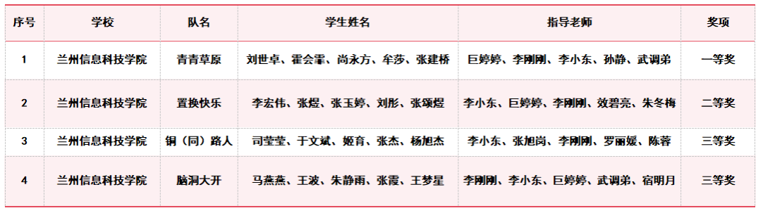第五届全国高校计算机能力挑战赛甘肃赛区竞赛暨甘肃省“AI+”大学生创新创业大赛获奖名单