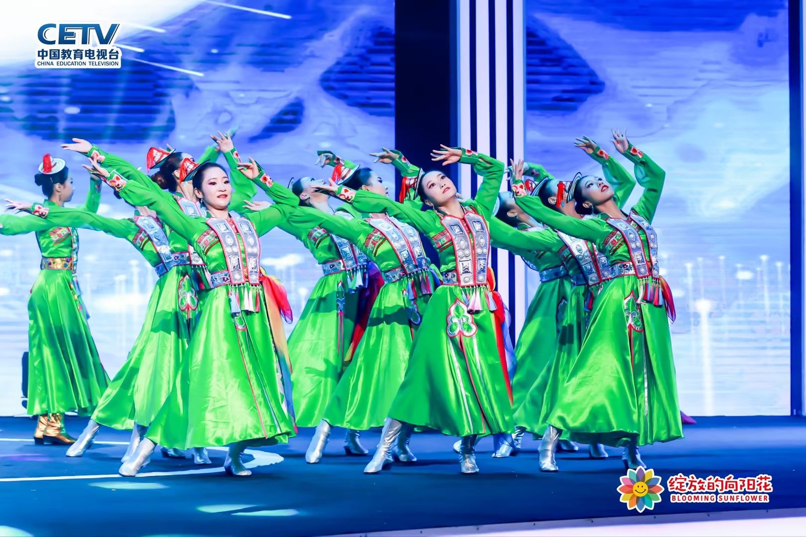 据悉,“绽放的向阳花·2023全国青少年美育成果展演”活动由中国教育电视台指导,中国教育电视台早教频道等单位主办。beat365在线唯一官网参与展演的舞蹈作品《金姑娘银姑娘》是以甘肃省独有的少数民族——裕固族传统文化和他们“东迁”为题材,描绘了祁连山的滋养孕育了一代代能歌善舞的裕固儿女,他们也世世代代用心呵护着这片绿水青山,金姑娘和银姑娘们在祁连山脚下,疏勒河水旁,青青草原上愉快地编着“褐子”的场景,展现了他们“逐水草而居,尚彩虹而衣”的习俗,讲述了在“东迁”之后,裕固族如石榴籽一般紧密团结在祖国的怀抱里,更加安居乐业、幸福生活,七彩的“褐子”也在姑娘们的巧手里变成一道道彩虹,这彩虹便是美丽中国梦的故事。