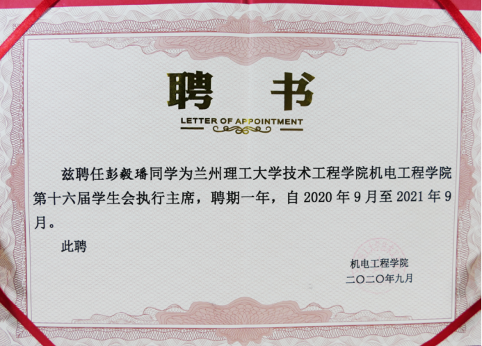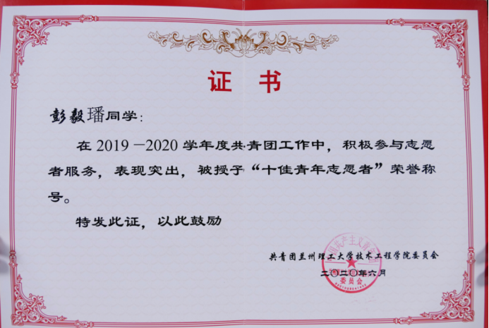彭毅璠曾多次获得“三好学生”、
