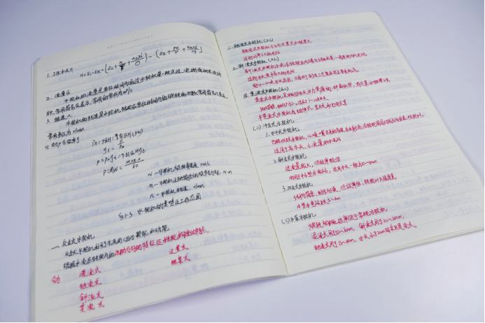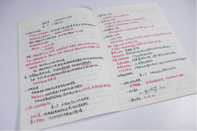 他认真的将所学的知识复习整理