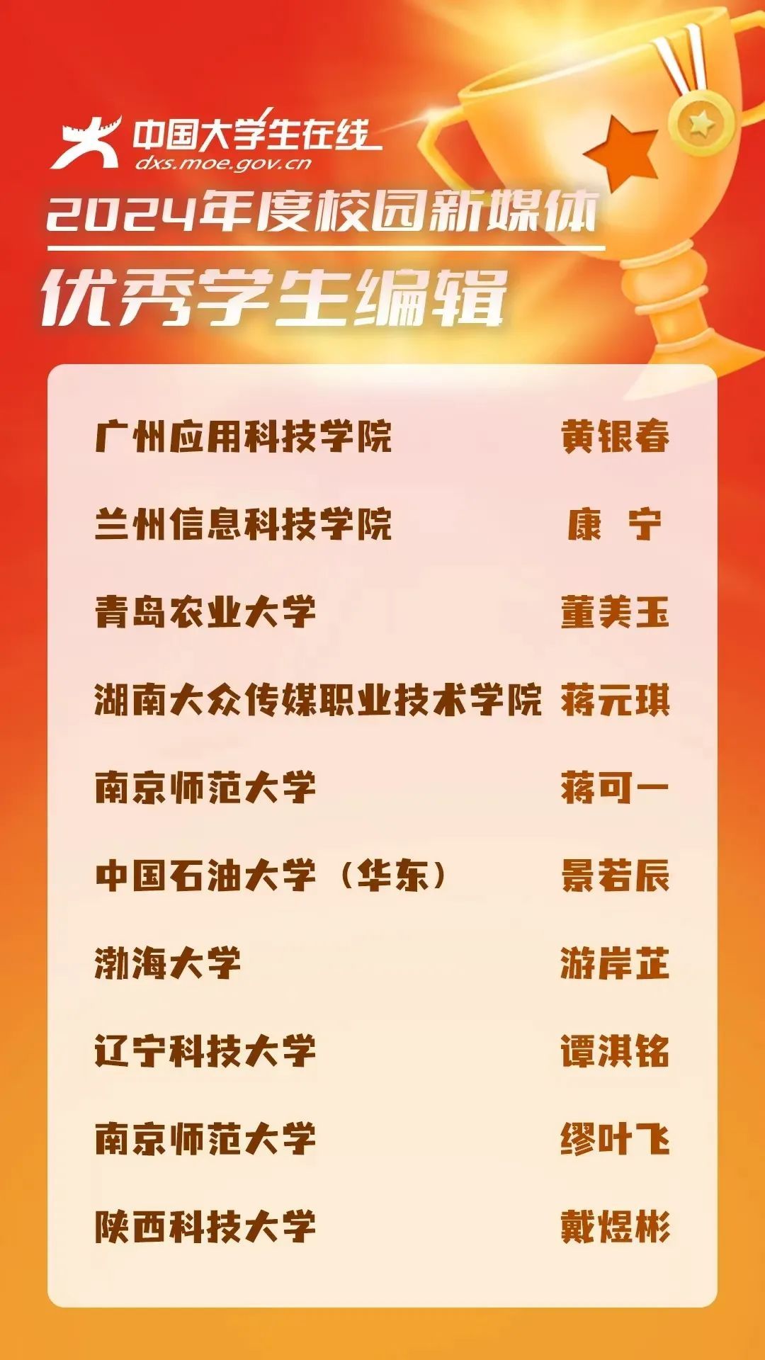 康宁:2022级电子信息工程专业,中国大学生在线2024年度校园新媒体优秀学生编辑