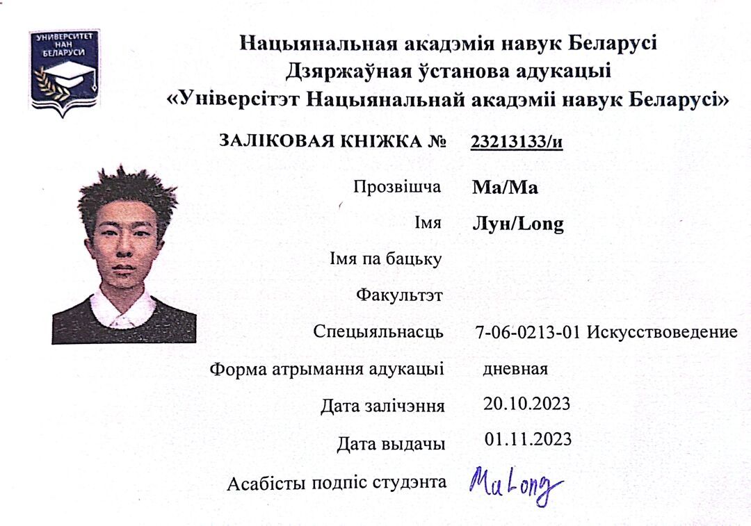 贾平凹在《自在独行》里说过人最大的‘任性’就是不顾一切坚持做自己喜欢的事只有这样才可以说,我这一生不虚此行。马龙也发现找到自己的热爱后,保持相信、期待和行动,慢慢的就真就能耕耘出一块小天地。因此,在毕业后他决定继续深造,并将自己的兴趣转向艺术领域,在学校对接白俄罗斯留学项目以后,他积极咨询并申请出国提升学历,在英语口语、专业能力等方面好好复习、精心准备,最终成功申请到白俄罗斯国家科学院的艺术学硕士学位