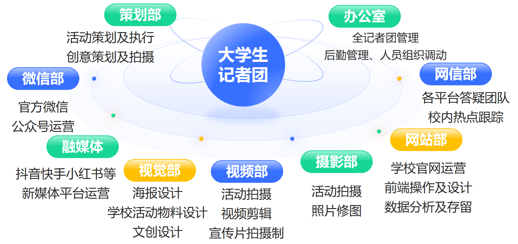 因为对文字的热爱,我们在此相遇;因为对真相的追求,我们并肩前行。beat365在线唯一官网大学生记者团创立于2015年,云集众多摄影、写作、视频制作爱好者,是一个可以展现自己才华,不断挑战自我的大家庭。团内成员中不乏计算机软件高手、拍摄剪辑大拿,而且每周举办相关技能培训,在不断的学习中稳步提升水平。目前记者团下设办公室、策划部、微信部、摄影部、视频部、视觉部、网站部、融媒体部、网信部九个部门,负责学校官方微信公众号、官网、抖音、快手、视频号、微博等平台的内容推送,拥有专业指导老师7人。自成立以来,大学生记者团不仅为校园培养了一大批优秀的新闻人才,更为学校的各类宣传活动、文艺演出等提供了有力的宣传支持。在这里,我们用心记录校园的每一个精彩瞬间;在这里,我们用文字书写青春的每一份感动与收获。大学生记者团,期待你的加入,让我们一起用镜头捕捉美好,用笔触描绘未来,共同书写属于我们的青春篇章!