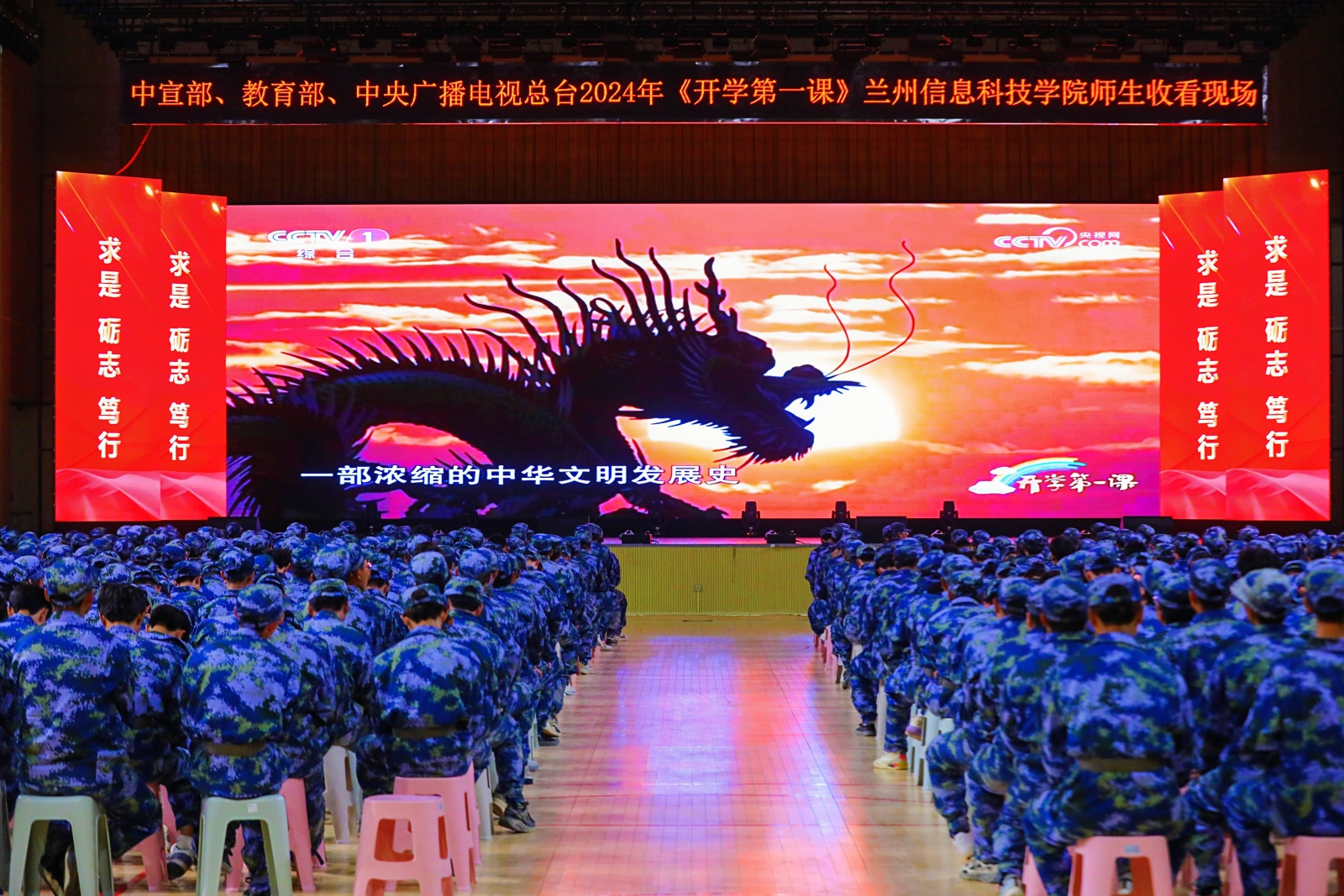 9月1日20:00,由中央宣传部、教育部、中央广播电视总台联合主办的大型公益节目2024年《开学第一课》如约而至,学校组织师生近4000人在体育馆现场收看。