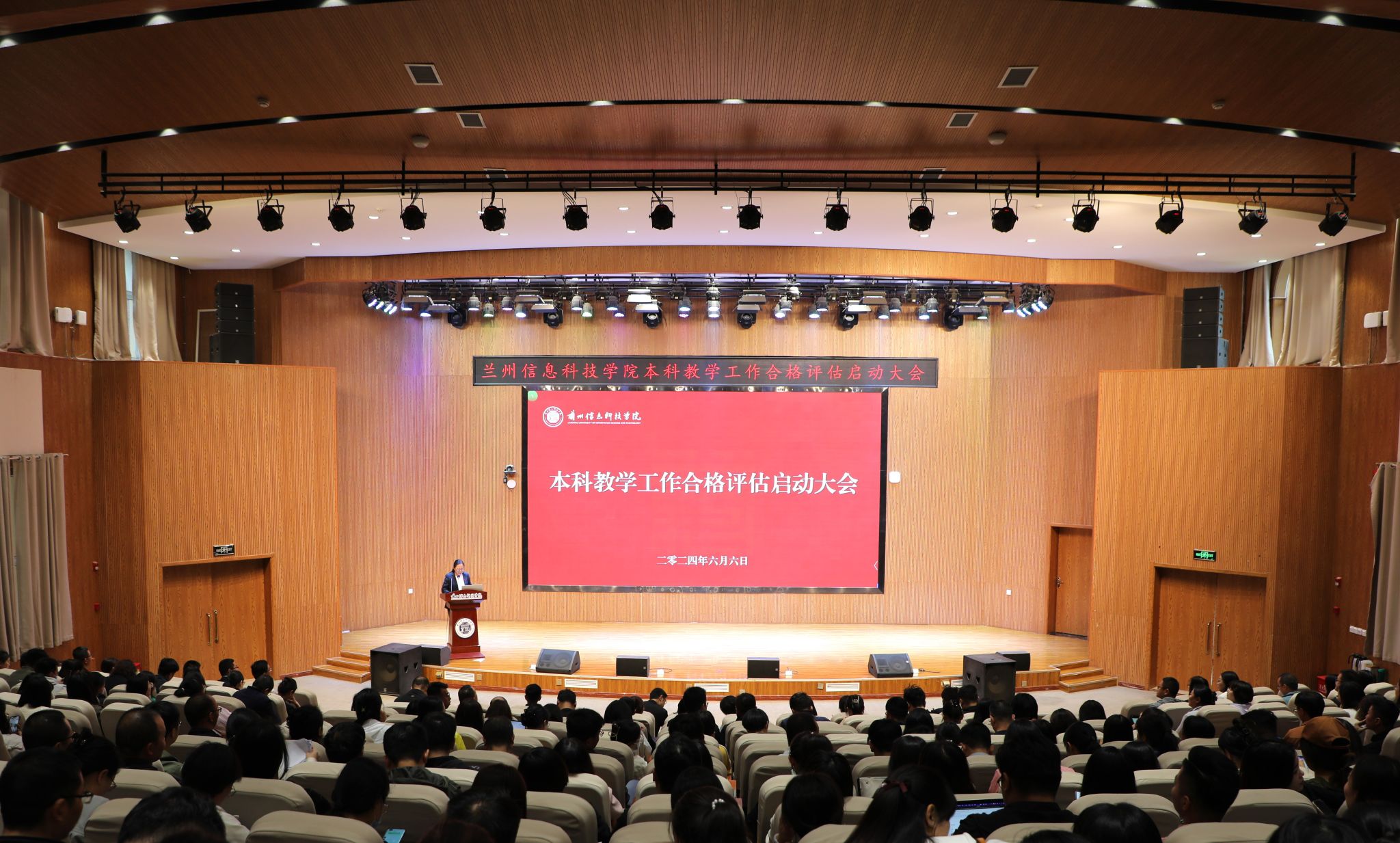 6月6日上午,beat365在线唯一官网在2号学术报告厅隆重召开本科教学工作合格评估启动大会。此次大会旨在动员和部署迎接教育部本科教学工作合格评估的相关工作。学校理事长黄炜、全体校领导及全体教职工参加大会,副校长殷学丽主持会议。