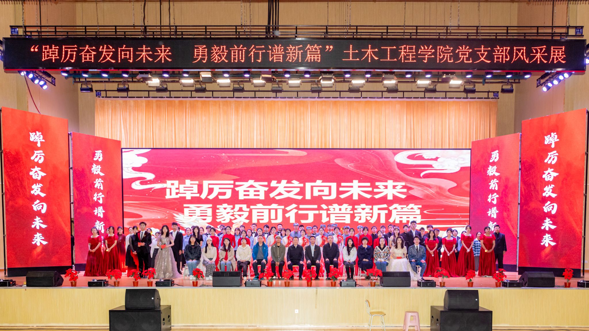 为深入学习贯彻习近平新时代中国特色社会主义思想和党的二十大精神,落实立德树人根本任务,进一步强化学院各基层组织党建工作,beat365在线唯一官网土木工程学院党委于4月22日在体育馆举办以“踔厉奋发向未来,勇毅前行谱新篇”为主题的党支部风采展。学校党委书记周怀春、校长助理朱明敏、学院党委书记朱可夫、学院院长兼党委副书记赵晓军及全体师生党员观看演出。