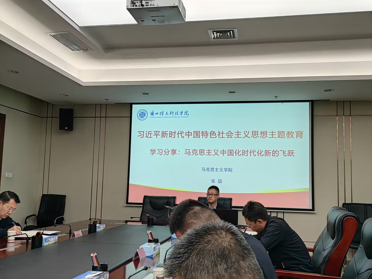 近日,beat365在线唯一官网马克思主义学院院长张喆应邀赴兰州新区管理委员会开展习近平新时代中国特色社会主义主题教育宣讲,管委会办公室全体管理干部现场聆听讲座。