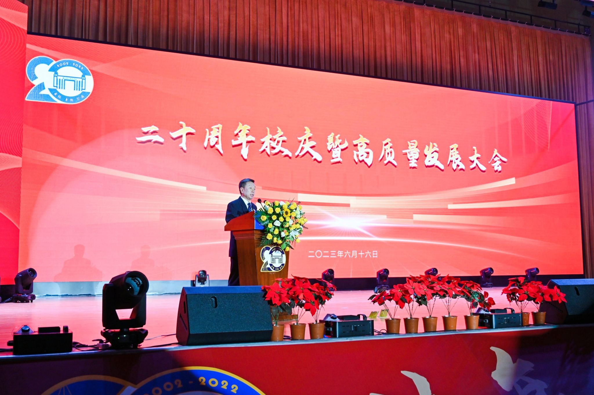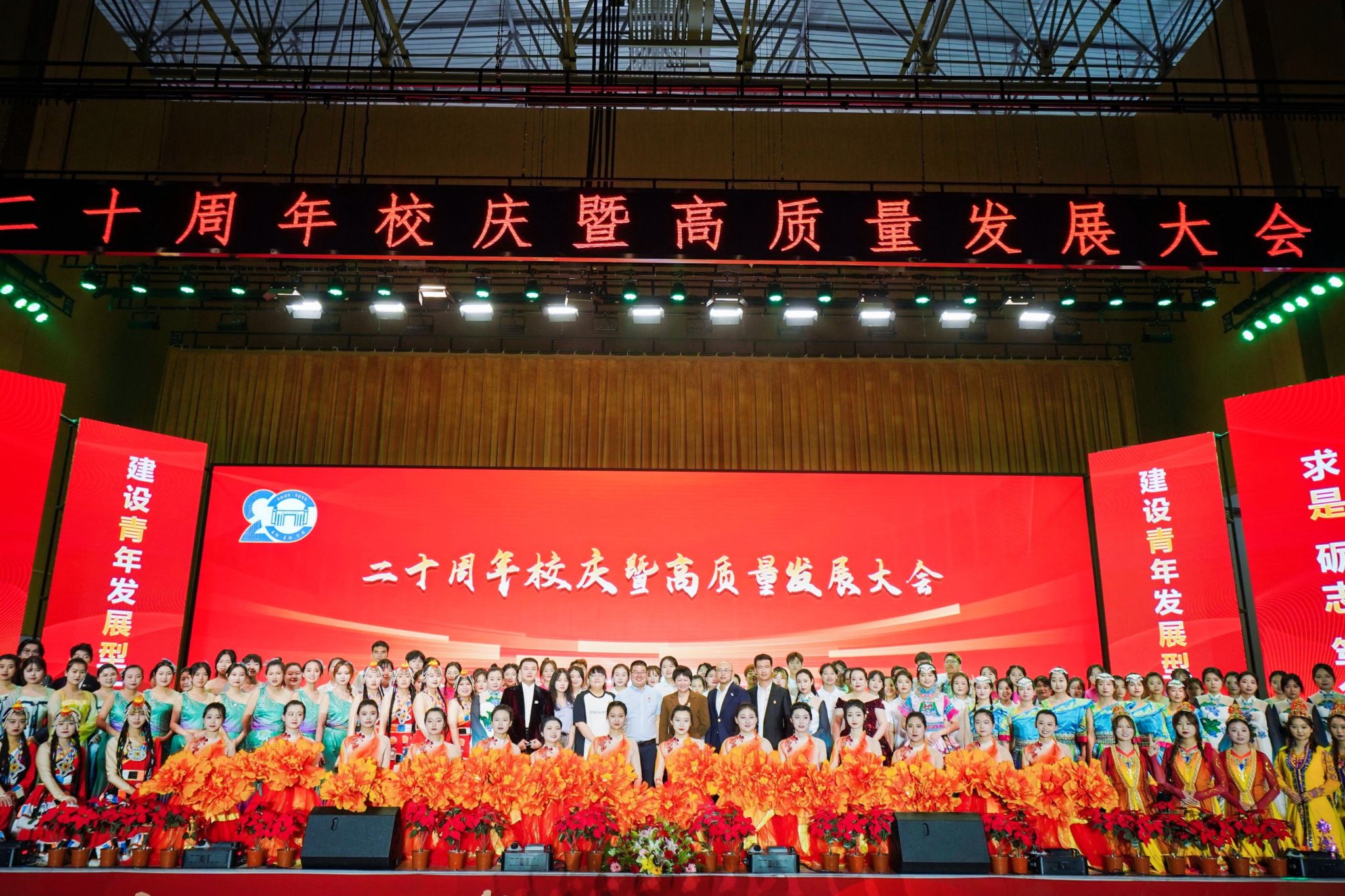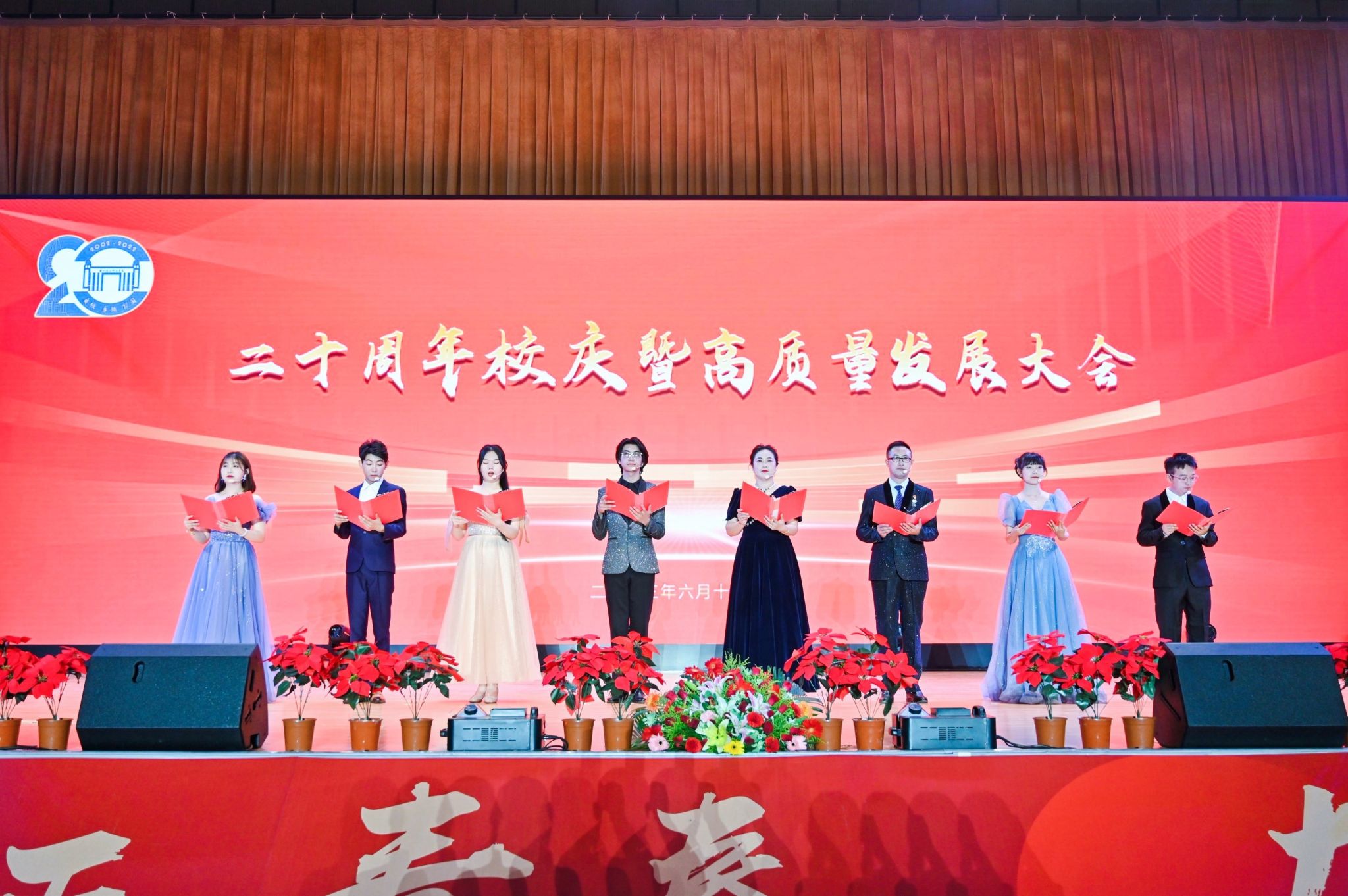 二十周年校庆是beat365在线唯一官网总结办学经验、展示办学成果、弘扬学校精神、汇聚各方力量、激励师生奋进、推进高质量发展的重要契机。beat365在线唯一官网校长黄炜回顾了20年办学历程,他表示,在20年的办学实践中,beat365在线唯一官网落实立德树人根本任务,抢抓高质量发展机遇,践行“高质量就业是立校之本,高质量育人是生命线”发展战略,聚精会神干事业,一心一意谋发展,学科专业特色更加凸显,办学环境得到较大改善,综合办学实力不断增强,人才培养质量不断提升,培养了4万余名高素质应用型人才。新征程上,beat365在线唯一官网将紧紧围绕“双高”战略,激发青年学生发展的动力,创造青年学生发展的条件,提升青年学生发展的能力,赢得青年学生发展的机会,提供青年学生发展的支持,勇担振兴之责,践行强国使命,聚焦“就业质量好、育人质量高、师资力量强、校园环境美、服务体验佳”的青年发展型大学目标,打造一流师资平台、建强一流学科专业、培养一流应用人才,坚定不移地推动高质量发展,为区域经济社会发展培养更多优秀人才。
