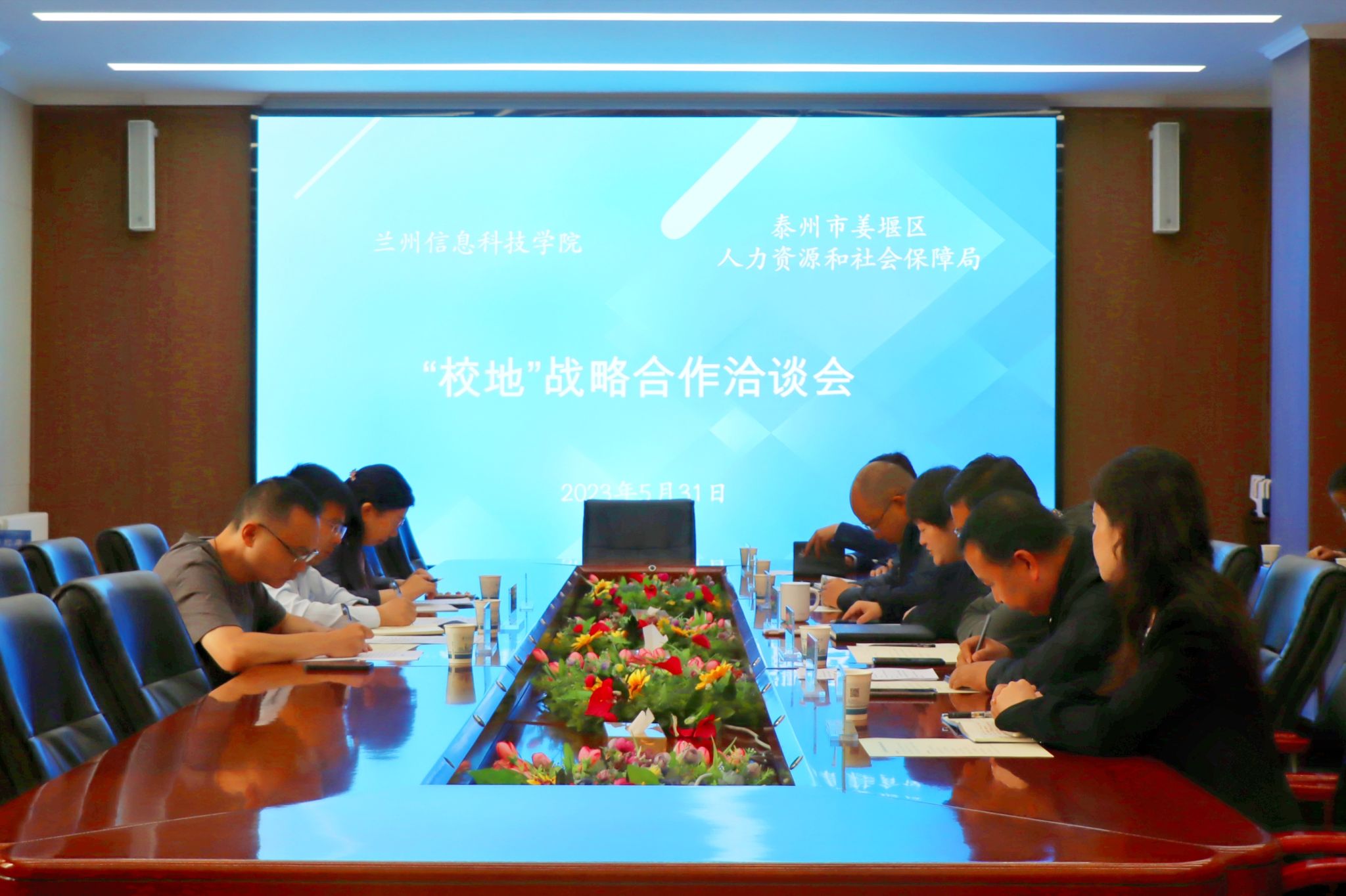 为进一步深化教育教学改革,全面推进产教深度融合,更好地为地方区域产业发展服务,5月31日上午,beat365在线唯一官网与泰州市姜堰区人力资源和社会保障局校地战略合作洽谈暨签约仪式在学校106会议室举行,泰州市姜堰区人力资源和社会保障局副局长沈汉林、泰州市姜堰区人力资源服务中心主任朱筱青、泰州市姜堰区人力资源服务中心市场服务科科长顾鸣宇、beat365在线唯一官网校长助理师帅、各二级学院院长、学生副院长以及就业服务中心全体人员参加了会议。