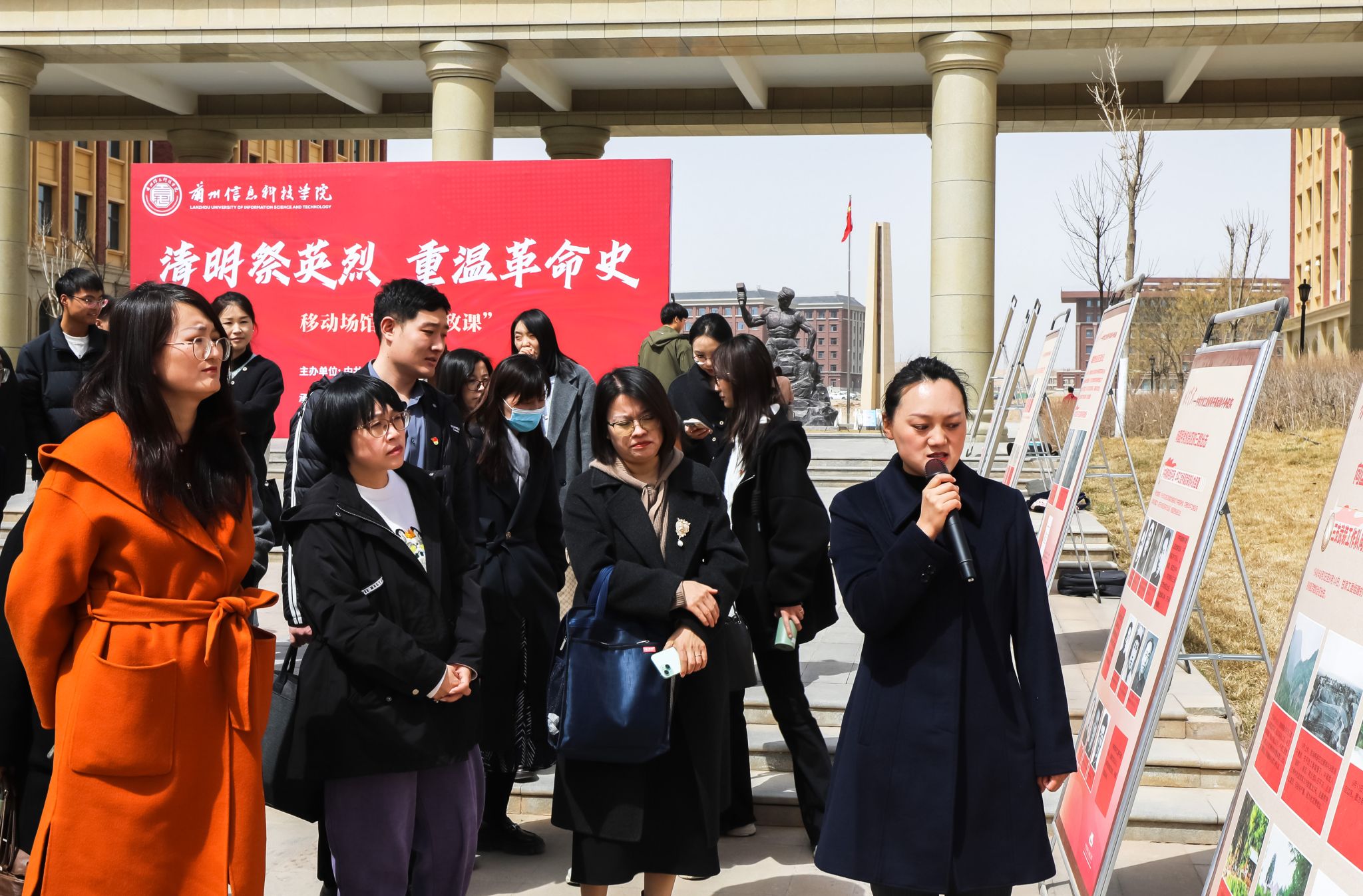 当天上午,中共甘肃工委纪念馆将展厅陈设迁移至校园内,在文化长廊为学生开展了一场记忆尤深的移动场馆“大思政课”。该场活动由纪念馆讲解员担任现场授课教师,以《燎原星火:中共甘肃工委领导开展武装斗争纪实》为主题,讲述了中共甘肃工委领导开展艰苦卓绝、可歌可泣、流血牺牲和浴火重生的革命奋斗历程。