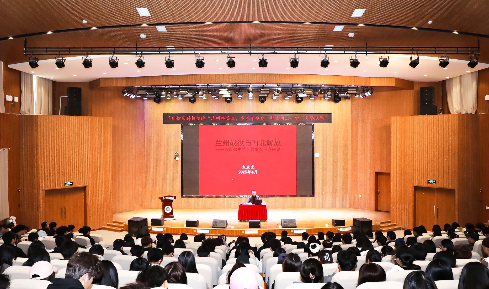下午,在学校学术报告厅,原八路军驻兰州办事处纪念馆馆长朱永光以《兰州战役与西北解放——兼谈甘肃党史的几个节点问题》为题,做了主旨报告。报告详细讲述了兰州战役的时代背景、演进过程、战事特点和历史启示。