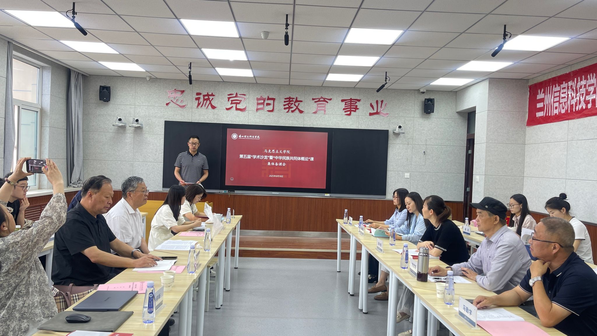 参与活动全体人员集体学习了“习近平总书记在中央民族工作会议上的重要讲话(节选)”和《习近平总书记关于做好新时代党的统一战线工作的重要思想学习读本》(节选)。党委学生工作部部长潘强玉同志从“教育与引导并重,引领学生思想”“鼓励与帮扶为主,加强学业指导”和“重视与培养同行,关注学生发展”等三个方面,向全体思政课教师介绍了我校近年来学生民族工作的经验及主要做法。“沙龙活动”邀请了西北师范大学马克思主义学院党史党建研究中心副主任、中国近现代史纲要研究所所长、硕士研究生导师闪兰靖教授,西北民族大学中华民族共同体学院副院长栗学钟副教授,分别以《“中华民族共同体概论”课程教学和建设的基本向度》和《树立正确的中华民族历史观—以<中华民族共同体概论>课程为例》为题开展了辅导报告。