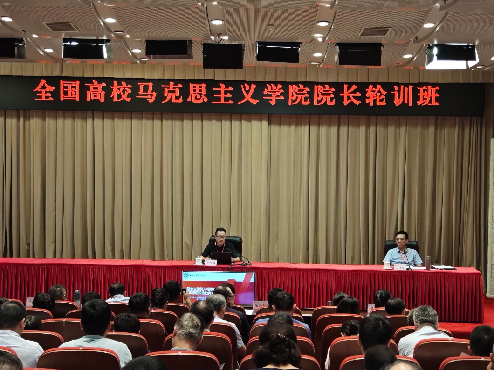 本次轮训班规格高、内容丰富、针对性强,共有包括哈尔滨工业大学、西北工业大学、北京理工大学、中国政法大学、四川大学、西安交通大学等在内的近200名来自全国32个省市自治区高校的马克思主义学院院长参加,参训院长中包括马理论研究领域的知名学者、高校思政课建设领军人才和马克思主义学院建设资深专家等。本次轮训内容涵盖“新时代高校马克思主义学院院长能力提升”“高校思政课课堂教学质量提升”“AI赋能思政课教学创新”“思政课实践教学”“《马克思主义基本原理》课教学创新路径”和“大中小学思政课一体化建设”等,通过领导讲授、专家讲座、案例研讨、读书会、实践学习和访谈教学等形式,共研新时代高校思政课教学创新。