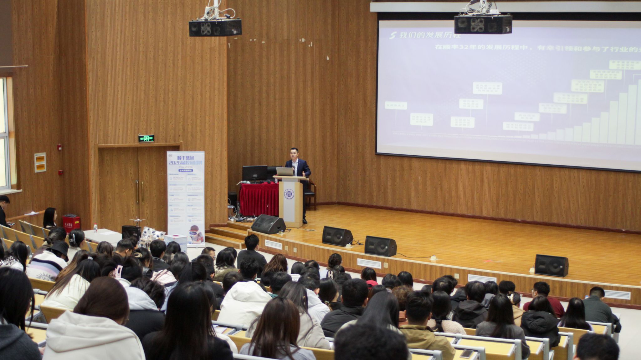 当日下午,专场招聘会在学校1号报告厅盛大启幕。兰州顺丰速运有限公司副总经理陈杰铭等一众领导亲临现场,24届优秀校友、现职教园营业店负责人张永琪也作为企业代表全程参与。此次招聘会吸引了26届毕业生及大二、大三学生近200人踊跃到场,现场气氛热烈非凡。