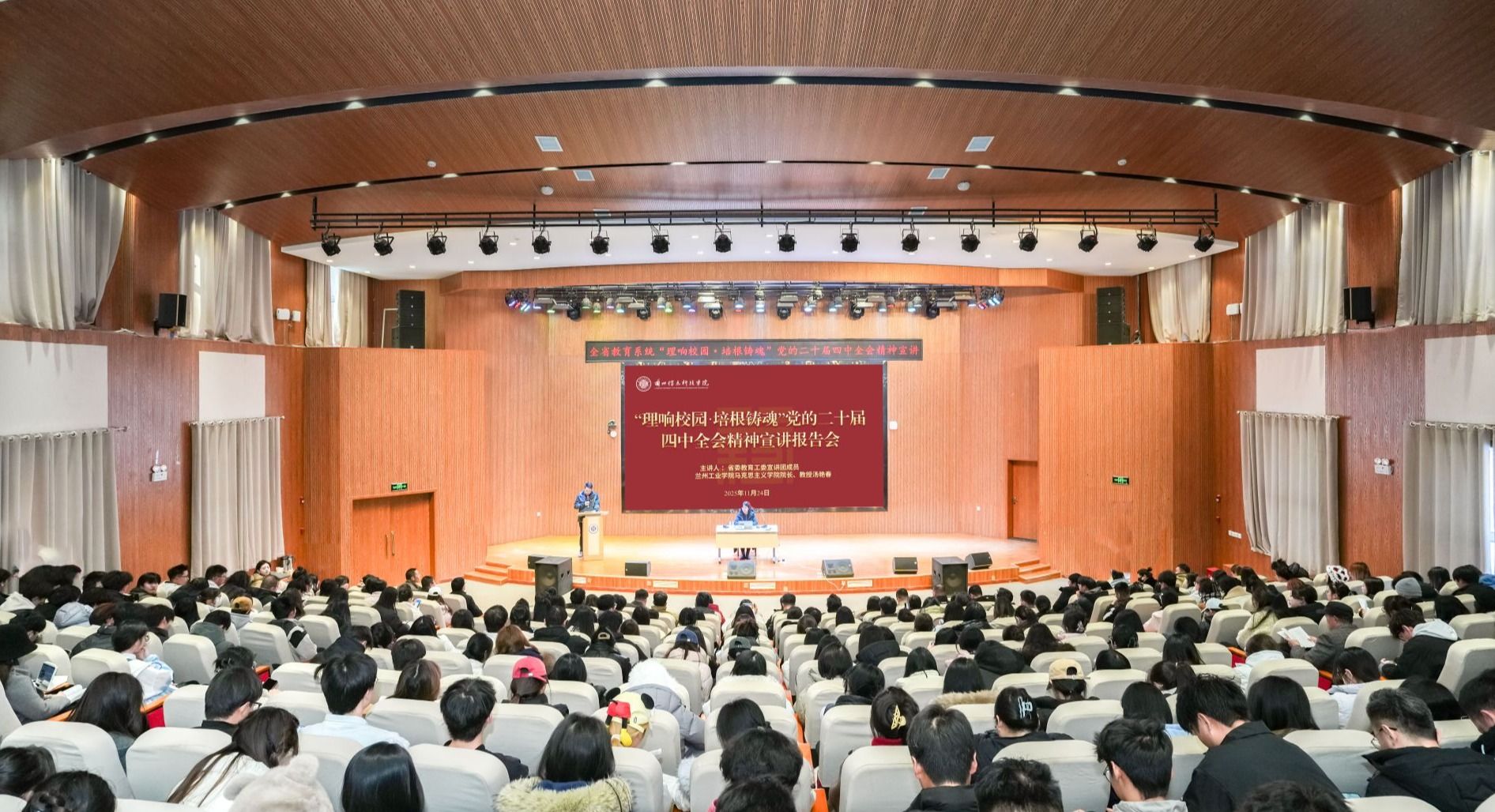 为全面深入学习贯彻党的二十届四中全会精神,根据省委教育工委统一安排,11月24日下午,学校在2号学术报告厅举办“理响校园·培根铸魂”党的二十届四中全会精神宣讲活动。省委教育工委宣讲团成员、兰州工业学院马克思主义学院院长汤艳春教授应邀作宣讲报告,学校党委书记周怀春及部分校领导出席。宣讲报告由学校党委副书记罗柏林主持。