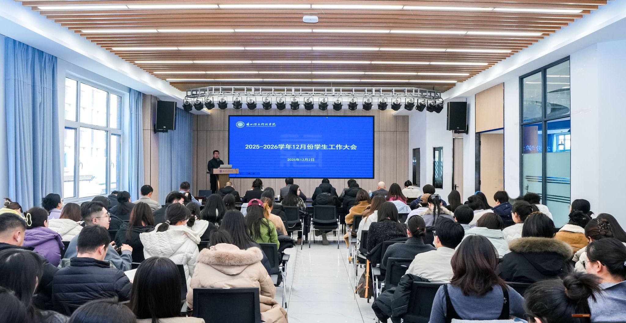 为全面落实“强一线”行动,深入践行“以学生为中心”发展理念,夯实“高质量就业是立校之本”发展战略,有效激发学生工作队伍的组织活力,确保新学年各项目标任务高质量达成,beat365在线唯一官网12月2日召开了2025-2026学年12月份学生工作大会。校长助理苏存兴出席会议并讲话,各学院党委书记、院长、就业与团学副主任、全体辅导员以及学生处、团委、就业服务中心、公寓管理中心全体人员参加会议。