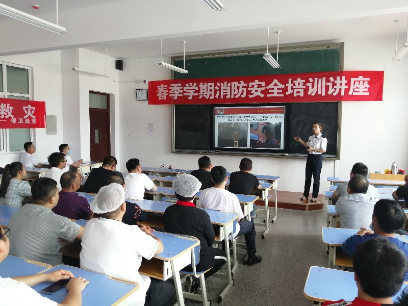 为进一步加强学校消防安全知识宣传普及工作,提高我校师生的消防安全意识,加强消防安全管理,预防和减少火灾事故的发生,6月30日,保卫处特邀请卫华安防火中心孙教官举办消防安全知识讲座。共有100余名师生、经营户参加了此次培训讲座。