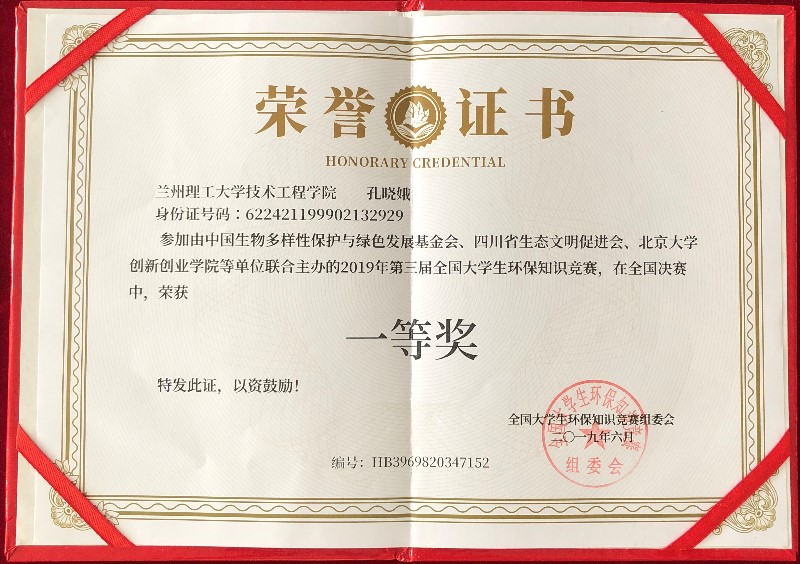 学校在2019年第三届全国大学生环保知识竞赛中喜获佳绩