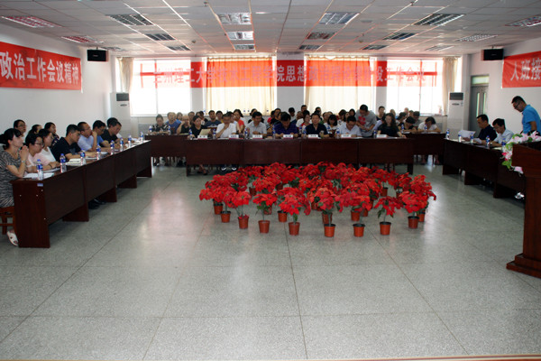 7月13日上午,学院在砺志楼C区六楼会议室召开思想政治理论课建设工作会议,就贯彻落实习近平总书记重要讲话精神和中央《关于加强和改进新形势下高校思想政治工作的意见》精神,切实加强和改进我院思想政治理论课建设,进行专题研讨和工作部署。兰州理工大学马克思主义学院党总支书记张军成教授、兰州理工大学马克思主义学院院长饶旭鹏教授、兰州理工大学马克思主义学院权丽华教授、兰州理工大学技术工程学院全体院领导、全体中层干部、全体教工党员、思政教研室全体教师、全体辅导员参加了会议。会议由学院党委委员、党群工作部部长张少峰主持。