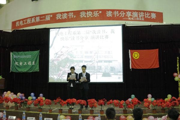 鸟欲高飞先振翅,人求上进先读书,机电工程系积极响应联合国教科文组织“世界读书日”的号召,敦促学生养成终生阅读学习习惯,培养学子阅读兴趣,营造良好的校园文化氛围,在机电工程系全体师生的积极筹备下,于2017年4月22日18:30,在1E101报告厅成功举办了第二届“我读书,我快乐”为主题的读书分享演讲比赛。