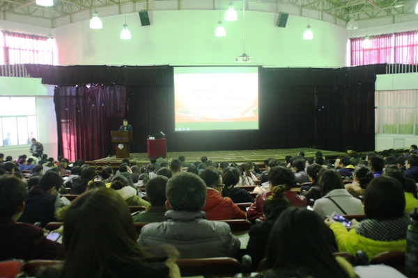 12月13日下午,学院党委邀请兰州理工大学马克思主义学院饶旭鹏教授,在砺志楼1E201报告厅做了题为《党的建设永远在路上十八届六中全会精神解读》的主题宣讲。学院党委委员、党总支书记、支部书记、全体教职工党员及学生党员代表共600余人参加了报告会。报告会由学院党委书记周怀春主持。