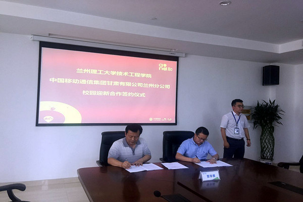 2016年7月15日下午,学院与中国移动通信集团兰州分公司举行校企合作签约仪式。学院院长赵万勇,党委书记周怀春,学院副院长谢黎明,中国移动兰州分公司总经理张小文及市区两级负责人等出席签约仪式。签约仪式由中国移动兰州分公司王晓刚副总经理主持。