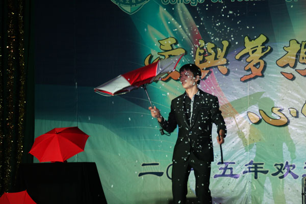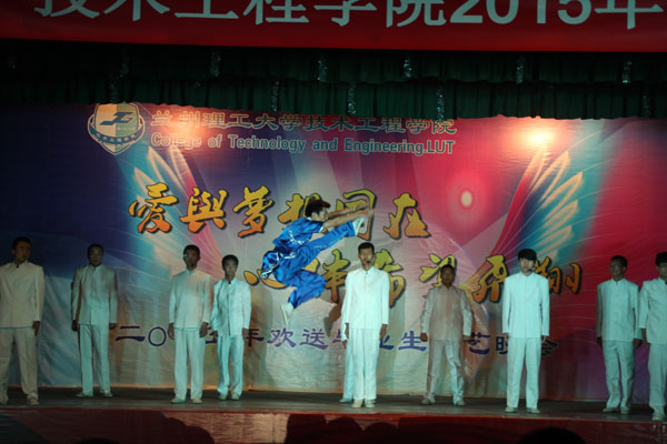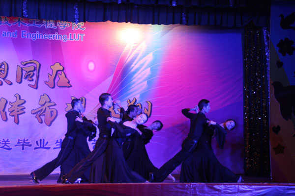 一曲动感十足的现代舞《What time is it》伴随着劲爆的音乐拉开了晚会的帷幕。民族舞《古丽》和《草原上的乌托邦》带观众领略了民族艺术的魅力。街舞《Crazy dance》展现了同学们的青春风采。体育舞蹈队同学带来的《放飞》,将体育舞蹈与音乐剧融合在一起,表达了同学之间的真挚情谊和对母校的眷恋之情。武术与朗诵《中国少年说》展现了青年的蓬勃精神,魔术《魔幻》将整台晚会推向了高潮,随后歌曲《渴望光荣》《兄弟》等节目逐一上演,演员们在欢快的节奏、跳跃的音符中展现出现代大学生的青春与活力,赢得场下一阵阵的喝彩。晚会在舞蹈《筑梦飞翔》中画上了完美的句号。毕业生们通过丰富多彩的表演表达了对母校浓浓的不舍和真心的祝福弥漫,老师们和毕业生共同演唱歌曲《Besame Mucho》和《Time to say goodbye》送上了对毕业生们的殷切期望和美好祝福。