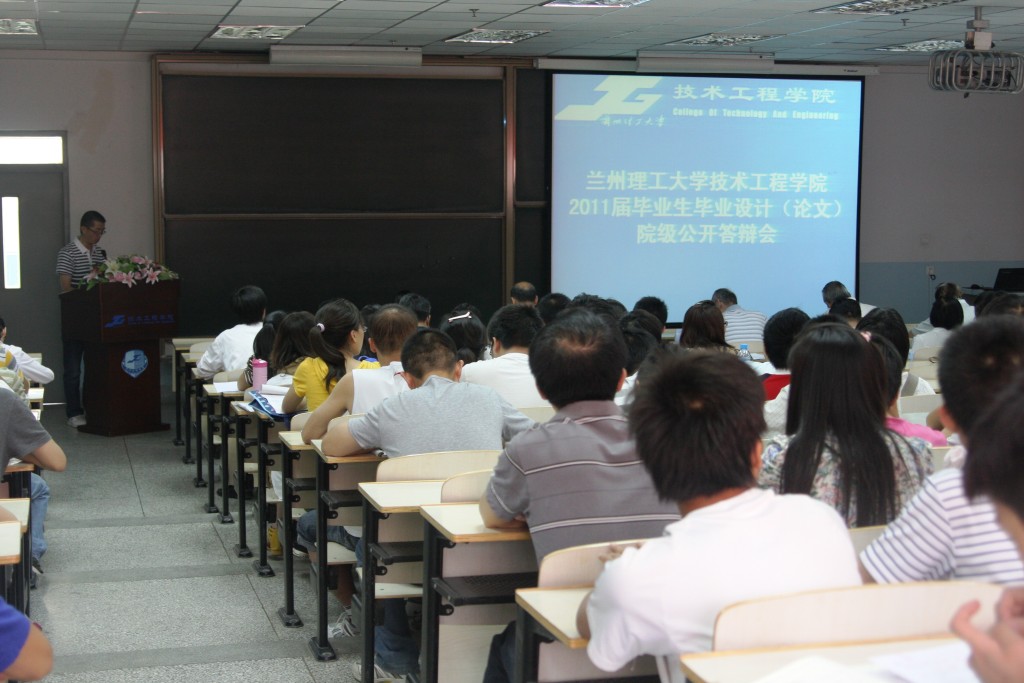 2011年6月8日,学院2011届毕业生毕业设计(论文)院级公开答辩会在砺志楼C区301教室召开。由来自兰州理工大学机电工程学院、材料科学与工程学院、电气与信息工程学院、石油化工学院、土木工程学院、甘肃路桥建设集团公司、兰州理工大学技术工程学院的13位教授、专家组成的答辩委员会,11名参加答辩毕业生和学院教师及学生代表参加了答辩会。教务处处长任宗义主持答辩会并宣读答辩委员会专家名单,副院长谢黎明介绍了2011年毕业设计(论文)工作情况,答辩委员会主席黄建龙教授宣读了答辩规则。