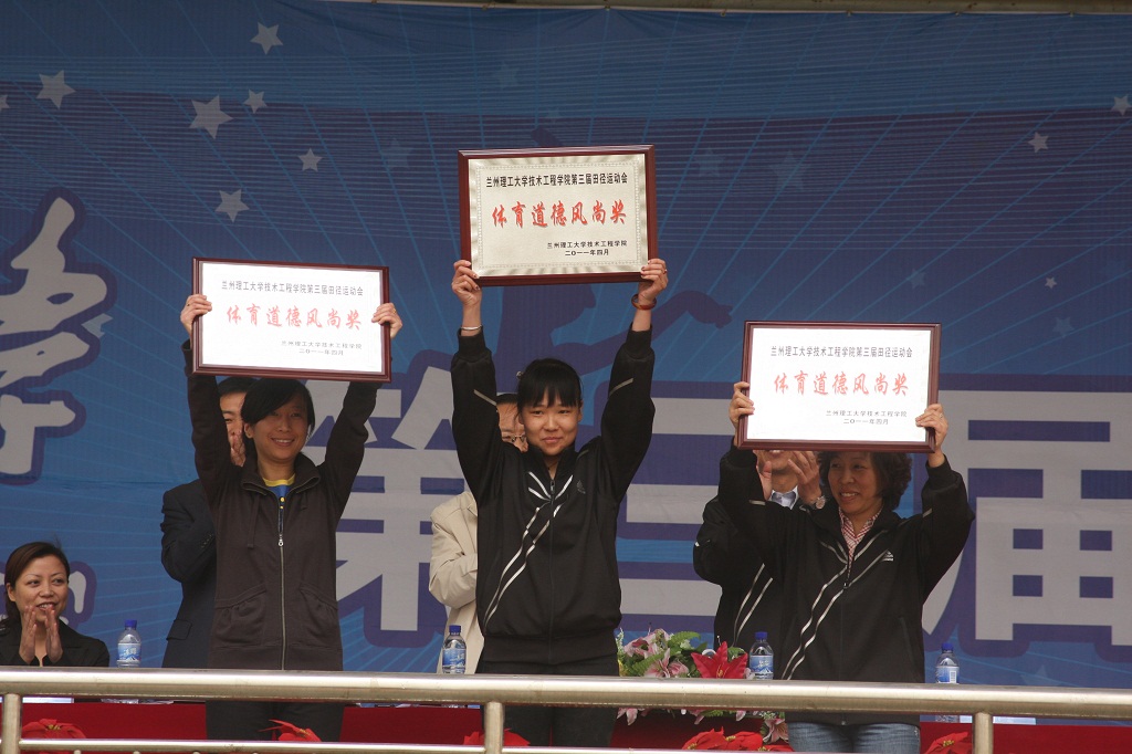 在运动员、裁判员入场后,学院院长助理兼财务处处长谭蓉、人文体育部主任赵迎新、教务处处长任宗义和党委书记、副院长李骐分别宣读了“关于表彰技术工程学院2011年教职工羽毛球比赛获奖个人的决定”、“关于表彰学院第三届田径运动会啦啦操比赛获奖集体的决定”、“关于表彰学院第三届田径运动会‘优秀运动员’、‘优秀裁判员’、‘优秀工作人员’的决定”和“关于表彰学院第三届田径运动会‘体育道德风尚奖’获奖集体的决定”。总裁判长刘曼冬宣读了本次运动会各项比赛成绩。各位领导为各位获奖运动员和集体颁奖。