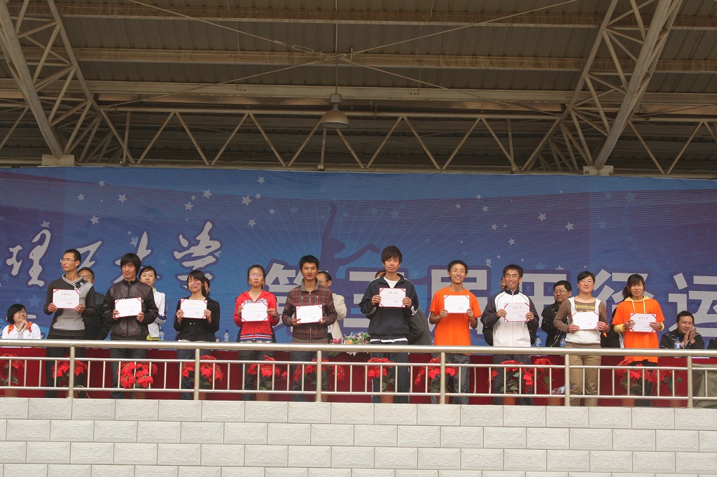 学院第三届田径运动会在经历了三天的精彩赛程后,于2011年4月29日上午在田径运动场落下帷幕。学院院长王瑞祥,党委书记、副院长李骐,党委副书记、副院长王佰成,副院长谢黎明及各部门负责人出席了闭幕式。闭幕式由副院长谢黎明主持。