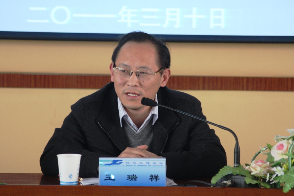 最后,学院院长王瑞祥作了讲话。王瑞祥院长指出,学院的党建工作一定要紧紧围绕学院发展和人才培养展开。在新机制、新模式下,学院的党建工作要不断探索创新,更新观念,全体党员要坚定学院发展的信念,同时坚持培育精神。王瑞祥院长要求全体教职工在工作中抓作风、抓学习、抓落实,以领导作风带动机关作风,进而带动教风和学风建设;加强学习,向书本学习、向他人学习、向实践学习;同时,坚持“实”字当头,用量化的标准抓好各项工作落实。王瑞祥院长希望全体教职工党员能够充分发挥模范带头作用,对学生严慈并重,注重人文关怀,释放爱心,关爱学生,细致深入的做好学生教育管理工作。同时在全院营造公正公平公开的环境,促进学院各项事业和谐有序发展。
