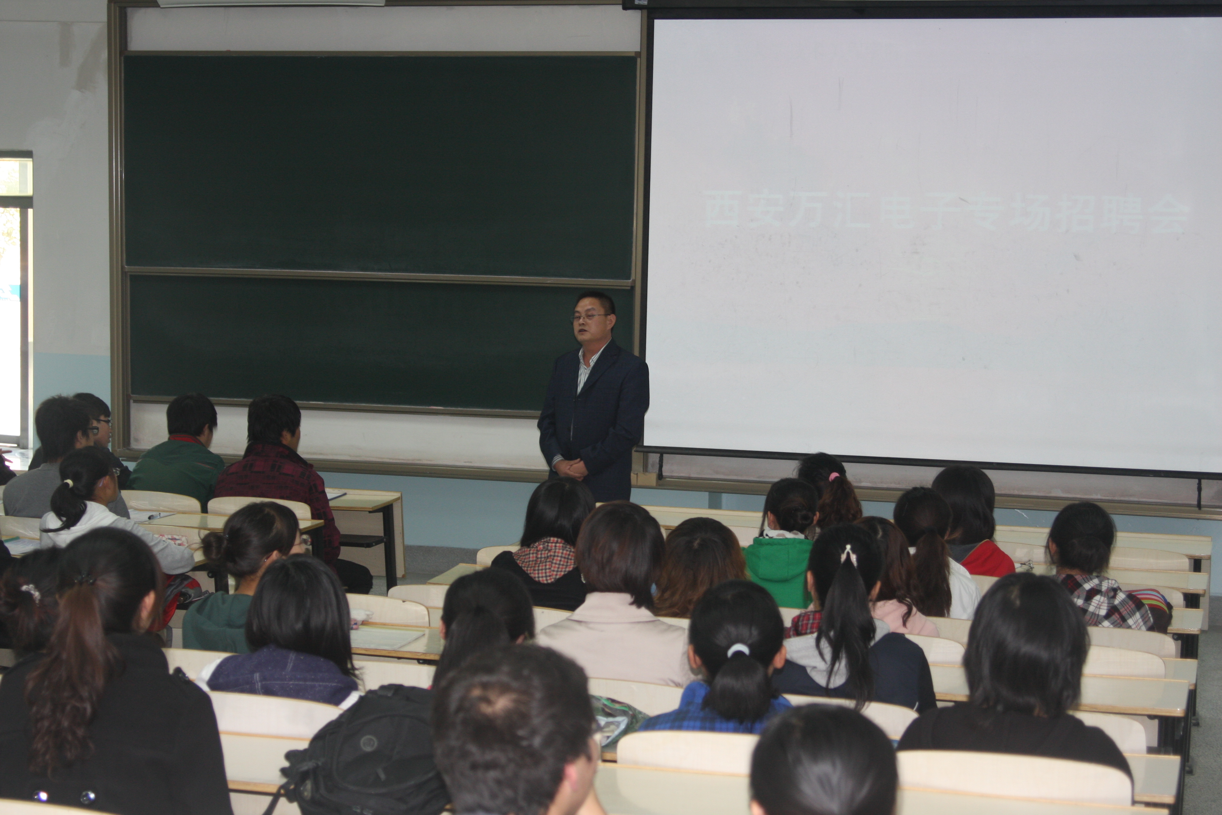 2010年10月20日下午3时,西安万汇企业在砺志楼C101教室举办专场招聘会,学院2011届电气工程及其自动化、机械设计制造及其自动化、电子信息工程、市场营销、土木工程等专业的80余名毕业生参加了此次招聘会。