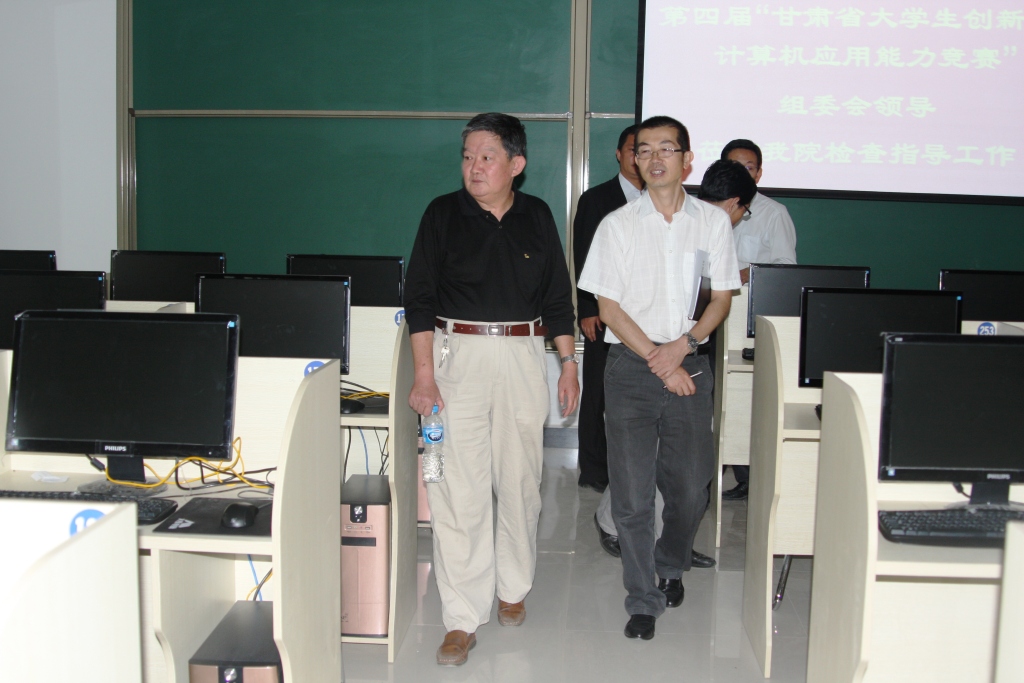 为确保2010年10月16日由我院承办的甘肃省第四届“创新杯”计算机应用能力竞赛顺利举行,2010年9月20日下午,甘肃省第四届“创新杯”计算机应用能力竞赛组委会领导莅临学院检查指导学院赛前准备工作。