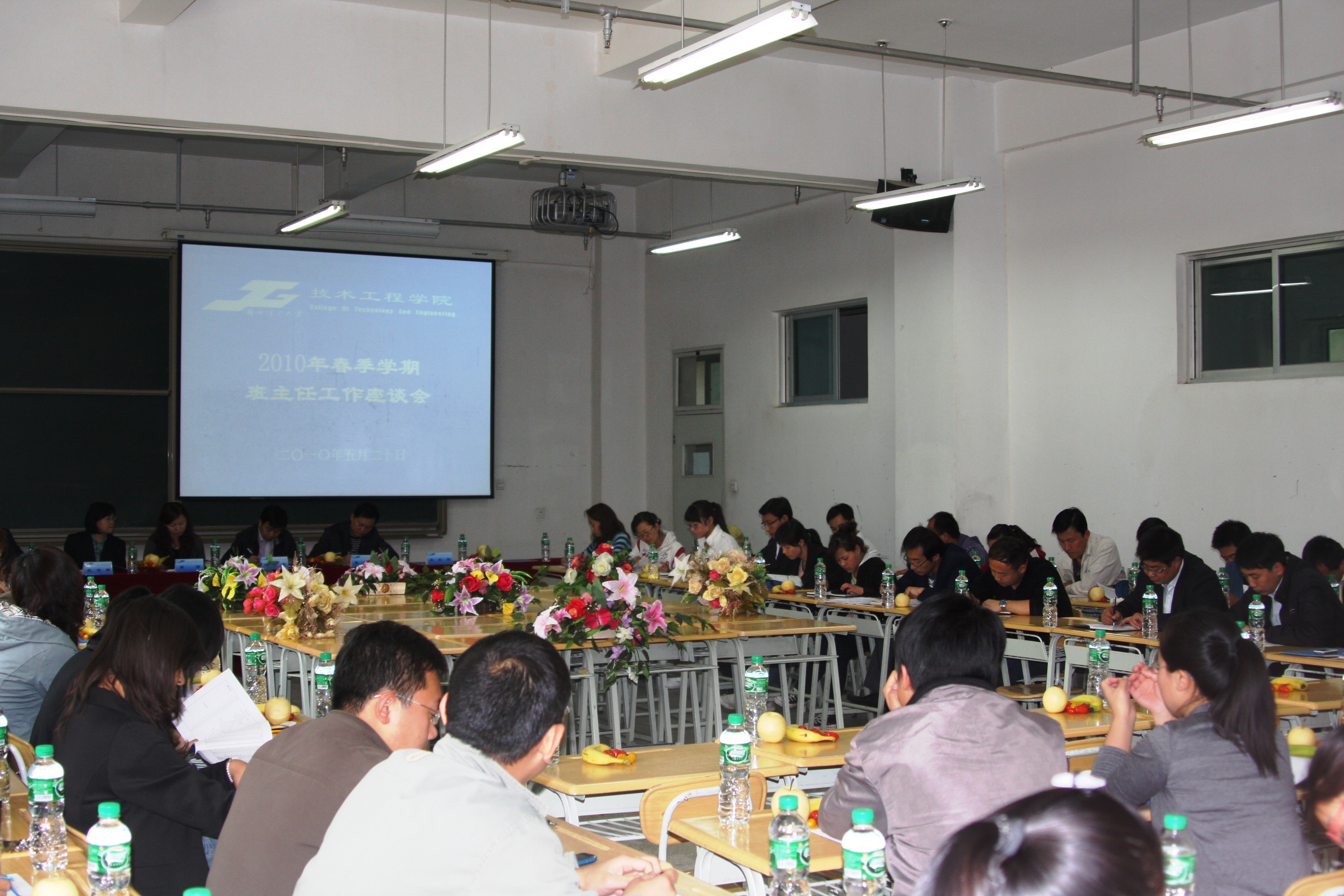 2010年5月20日下午3:00,学生处在砺志楼1D104教室组织召开了2010年春季学期班主任工作座谈会,学院党委副书记、副院长王佰成,相关职能处室负责人及全体辅导员班主任参加了会议,会议由学生处副处长朱明敏主持。
