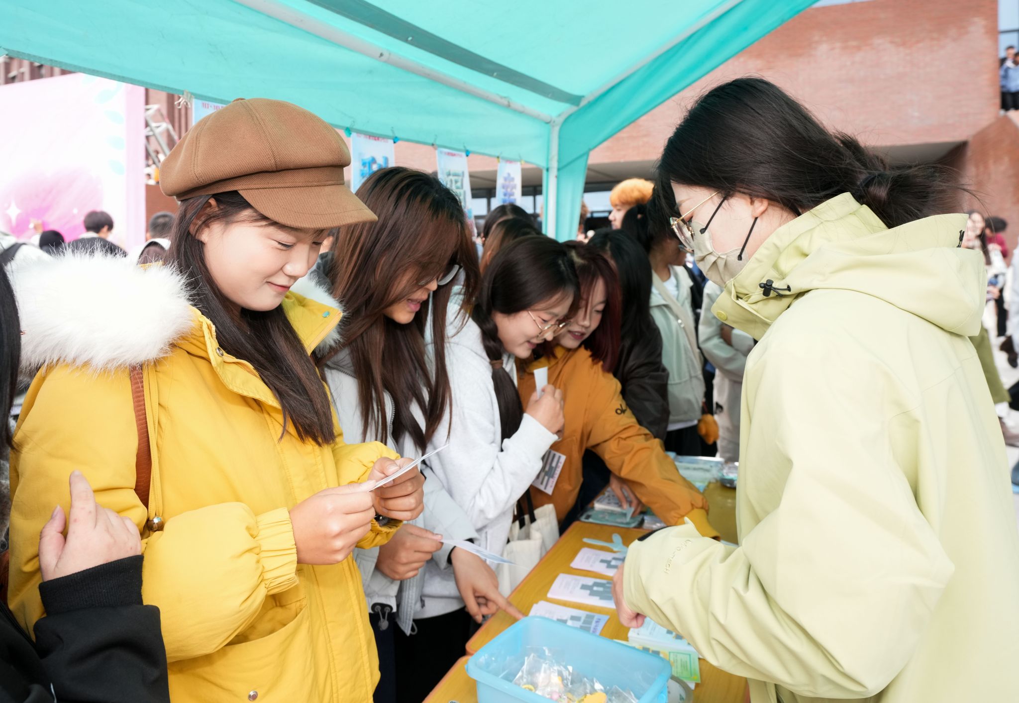 在学校1号教学楼前,现场开展的“世界精神卫生日签名”“秋日书语”“幸福刮刮乐”活动引发同学们纷纷驻足参与。每一个签名都代表着一份对自身心理健康的承诺和对世界精神卫生日的关注。每一份写给自己的时光来信,都是同学们对内心世界的思考与表达。每一张领取到的幸福刮刮卡将记录7天的幸福体验,同学们笑着刮开卡片,或立刻行动完成小任务,或拍照记录下这份惊喜。活动现场的李同学说:“我今天刮到的挑战是‘记录三件今天发生的小事’,我打算晚上睡前分享在朋友圈里,比如刚才排队时同学帮我递了纸巾,广播里放的‘心灵之声’节目刚好说到我最近在意的焦虑调节方法,还有这张能记录7天幸福的刮刮卡——原来幸福真的藏在这些小细节里。”在轻松的互动中,同学们悄然将积极心理的种子播撒进心里,让“人人享有心理健康服务”的理念,通过这些贴近生活的小活动,真正走进每一位师生的日常。