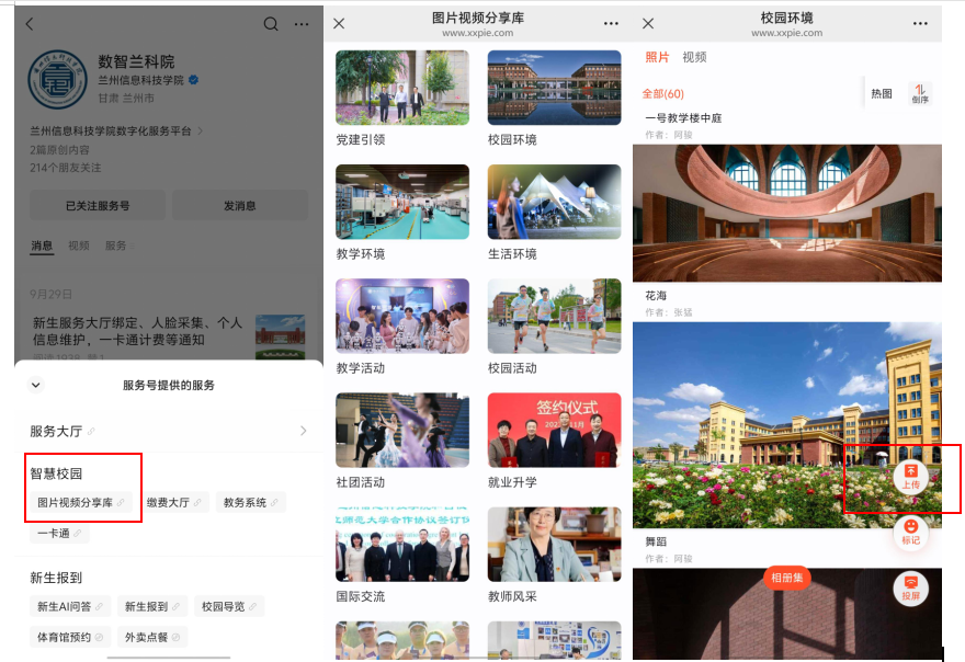 本次全新上线的“图片视频分享库”,包含党建引领、校园环境、教学环境、生活环境、教学活动、校园活动、社团活动、就业升学、国际交流、教师风采、学生风采、师生互动等核心版块,全面覆盖校园生活的每一个高光时刻。